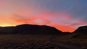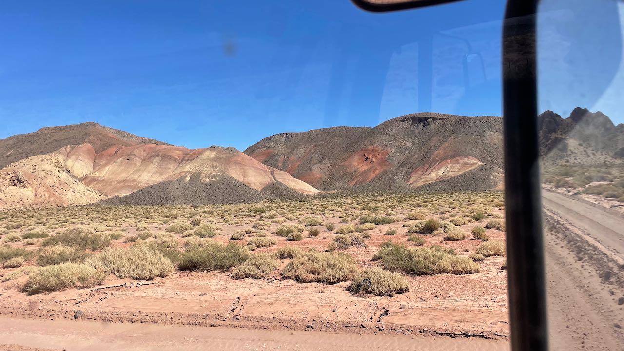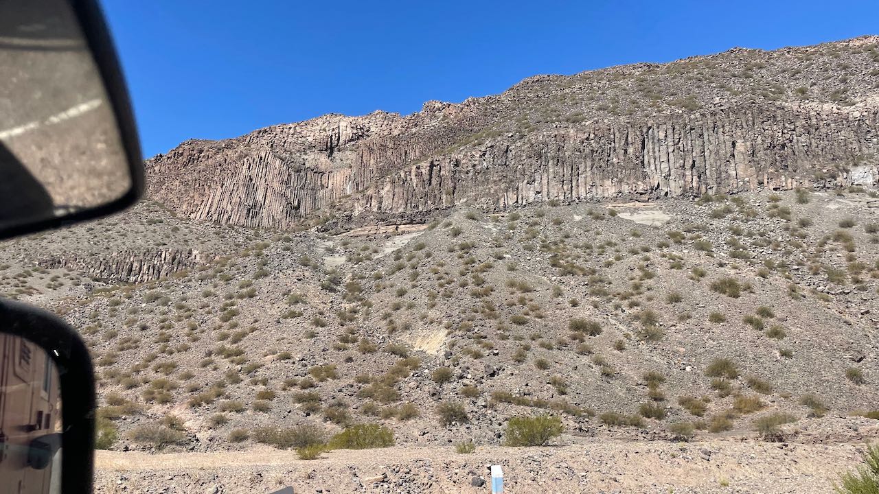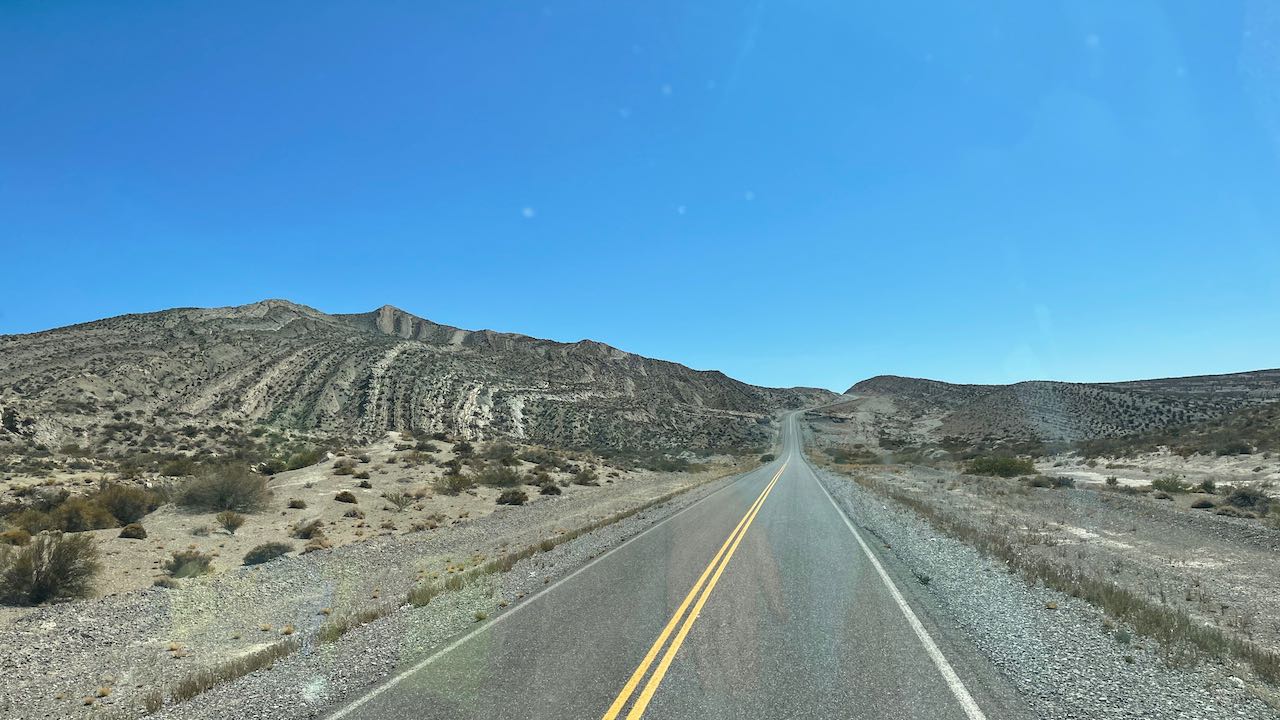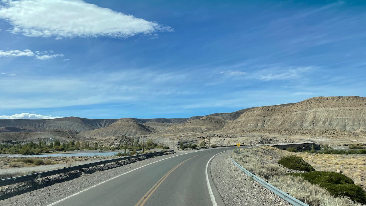 Die 40 ist zunächst etwas langweilig, aber dann gibt es Streifen- und Schichtberge, Flusstäler und erloschene Vulkane zu sehen.