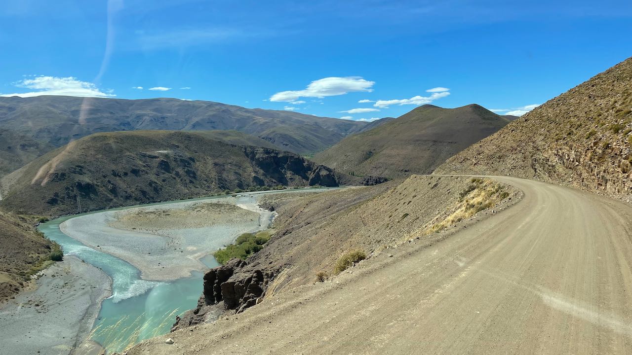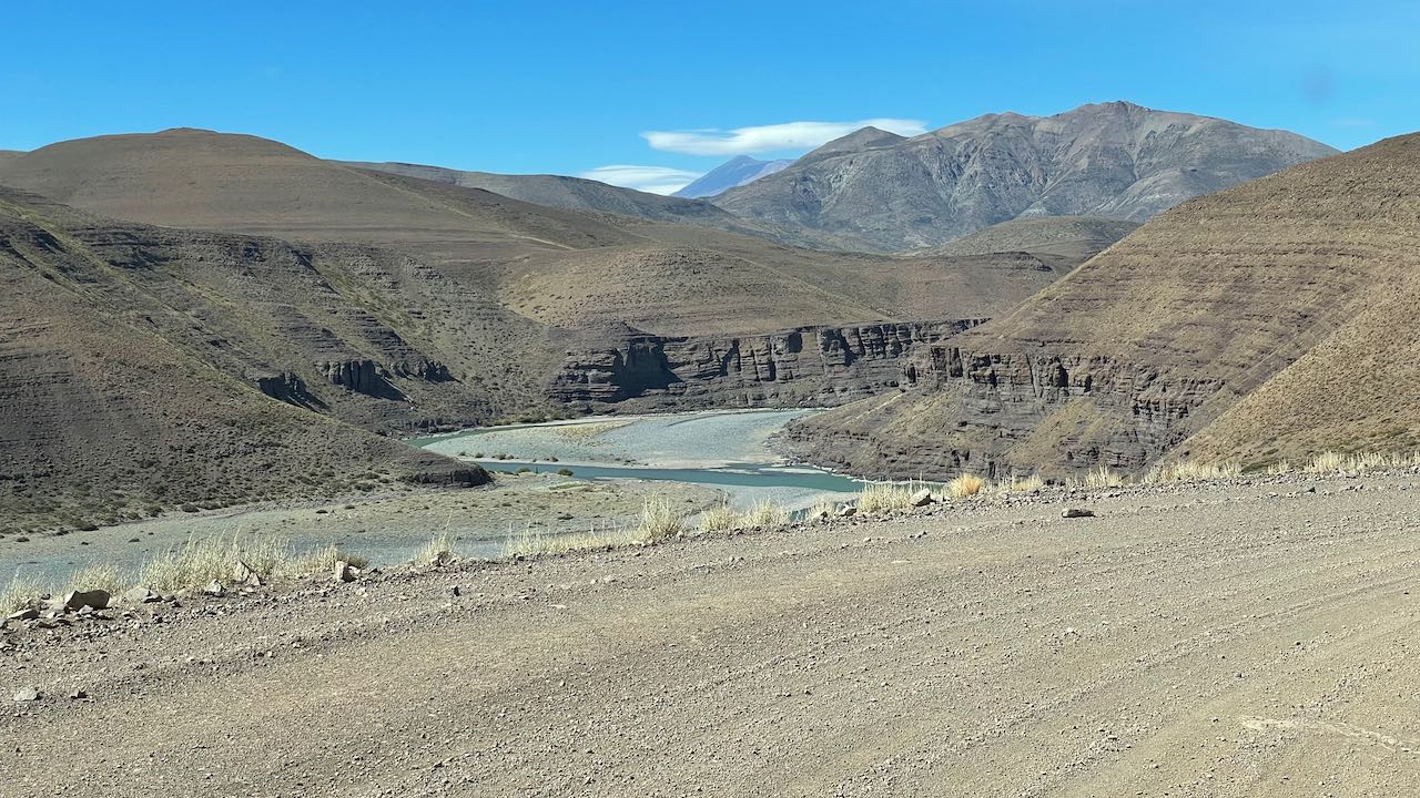 Zwischen den Bergen blitzt kurz der Rio Neuquén auf