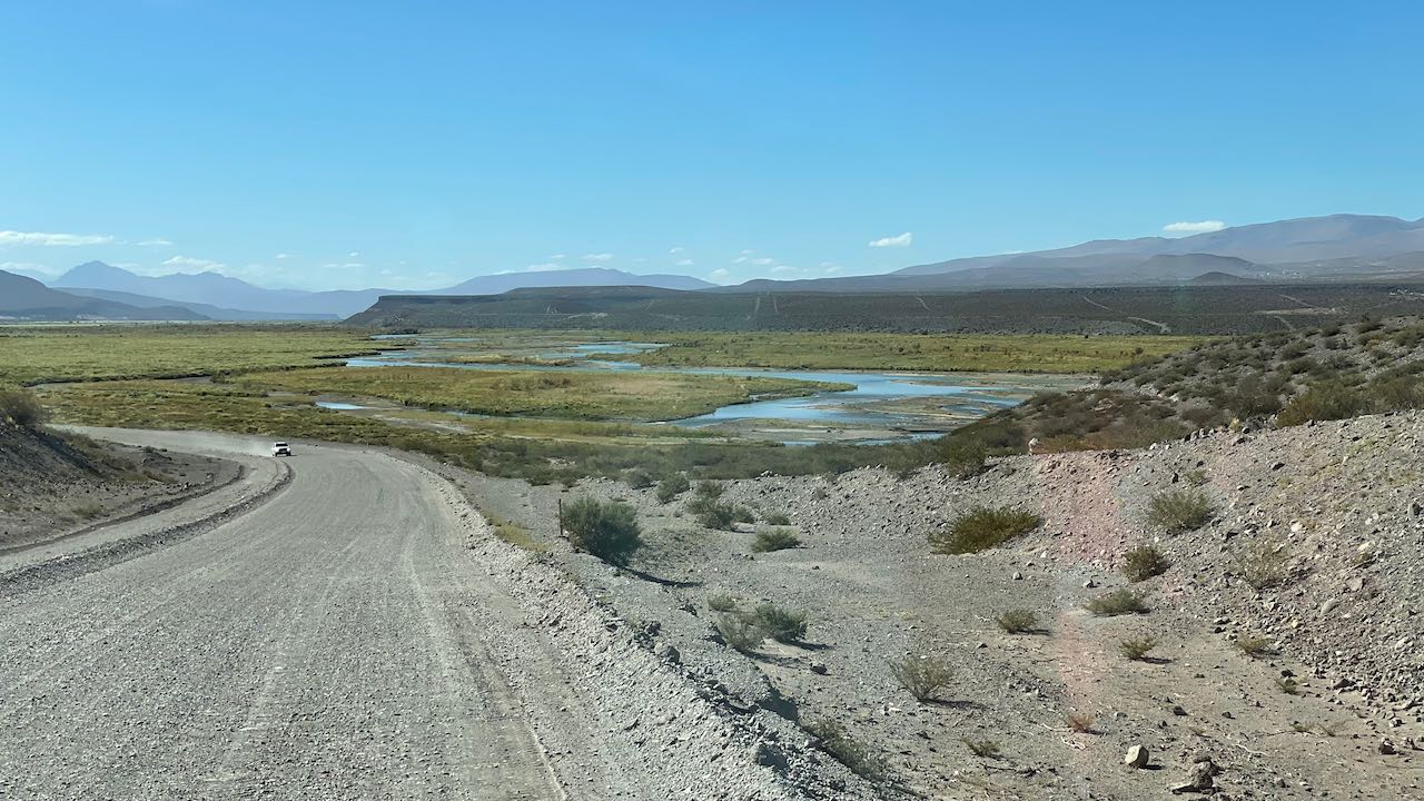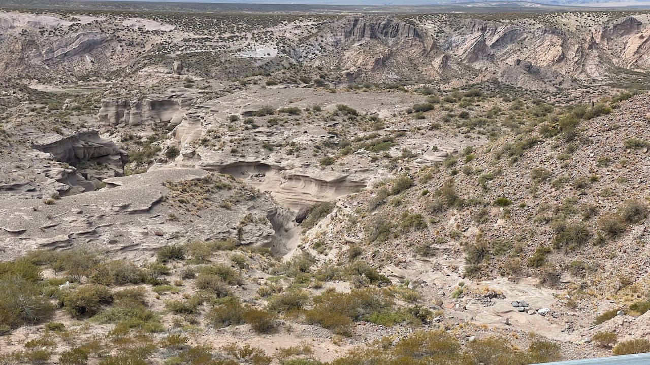 Nach wenigen Kilometern sehen wir zwei ältere Argentinier, die an ihrem Pickup rumbasteln. Panne. Wir halten und fragen ob wir helfen können. Sie: „No ingles“ – wir: „No español“, aber wir verstehen, das einer gerne bis zum nächsten Ort mitfahren würde. Wahrscheinlich Hilfe holen. Klar, machen wir. Ich rutsche auf die Mittelkonsole, recht unbequem, aber bis nach Bardas Blancas sind es nur 20 Kilometer, das geht schon.