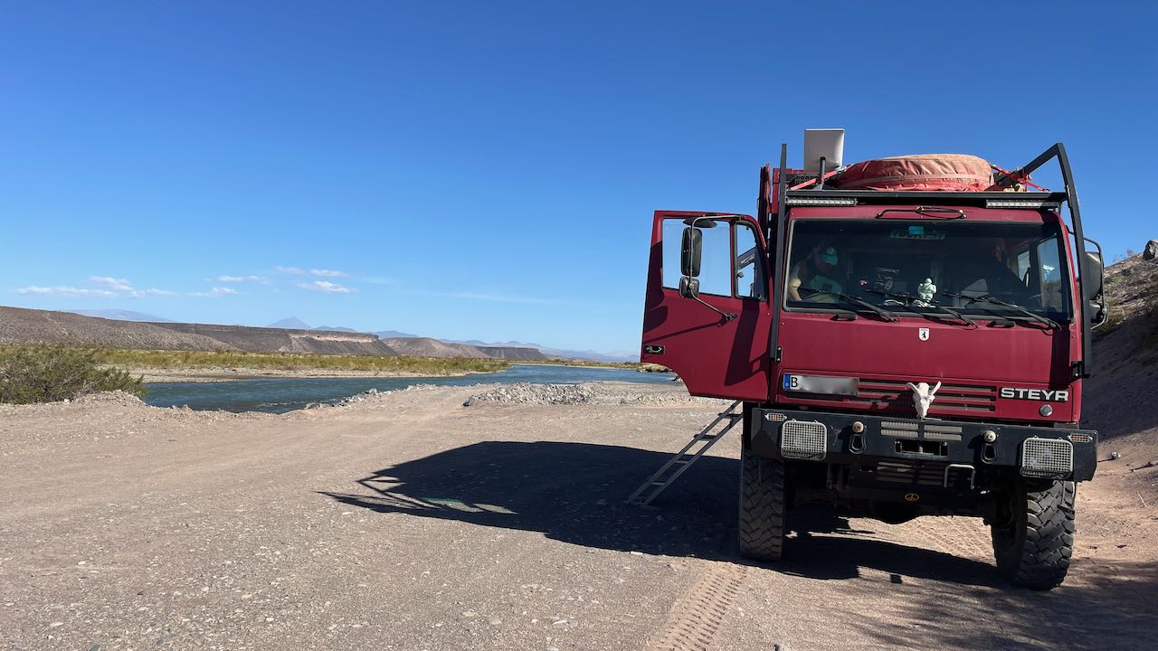 17 Uhr, wir werden fahrmüde, Martin entdeckt einen Abzweig zum Rio Grande, kurzentschlossen biegen wir ab.
