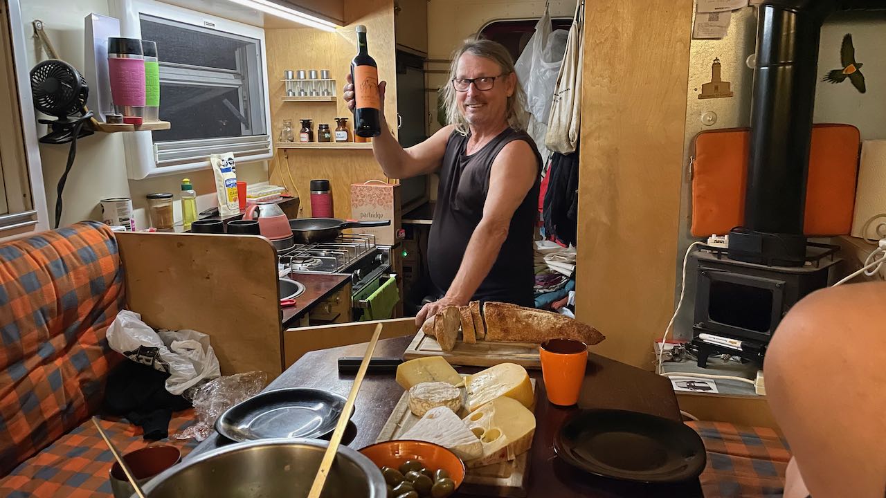 Mit frischen Tomaten und mehr Wein im Rucksack brausen wir zurück.