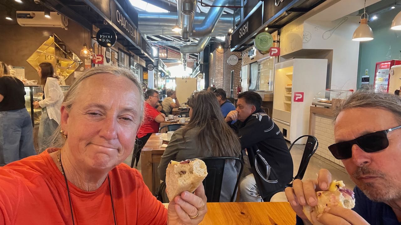 Wir düsen nochmal zum Mercato, frühstücken Zwiebelciabatta und leisten uns ein sündhaft teures Eis.