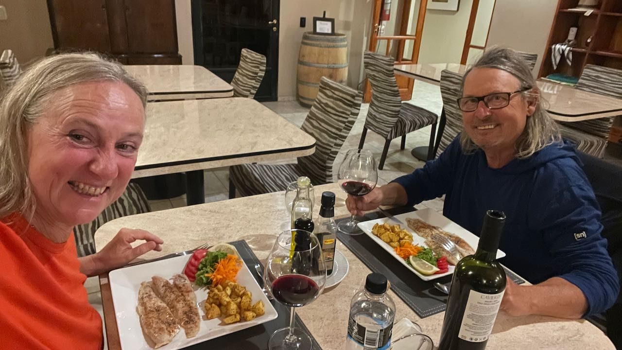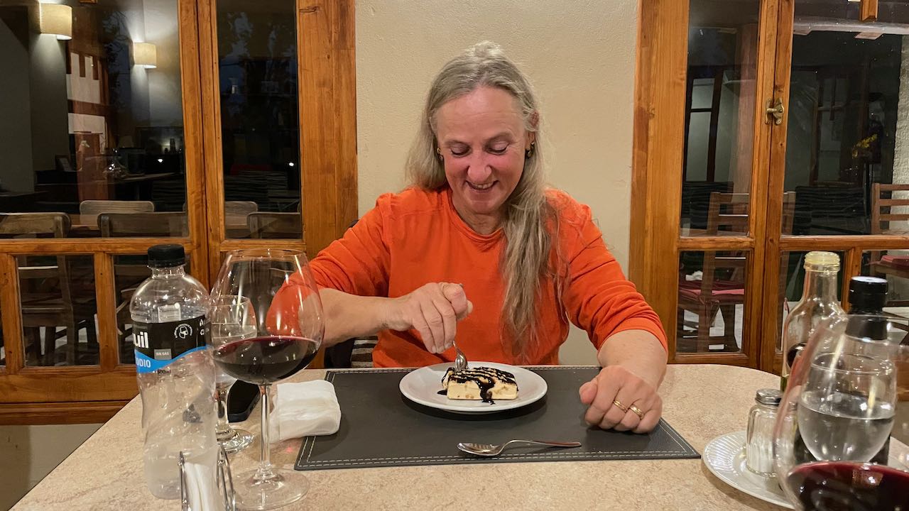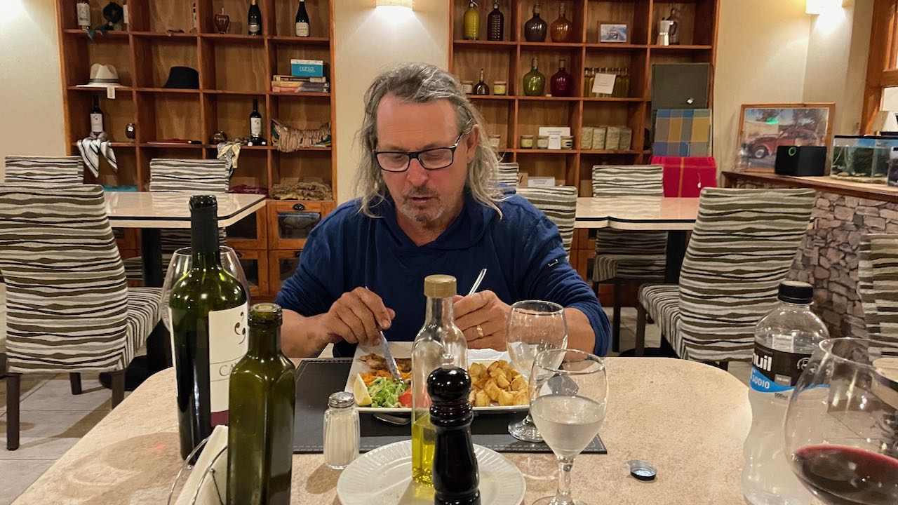 Die Köchin umsorgt uns allerliebst, wir bestellen eine Flasche hauseigenen Malbec zum Essen.