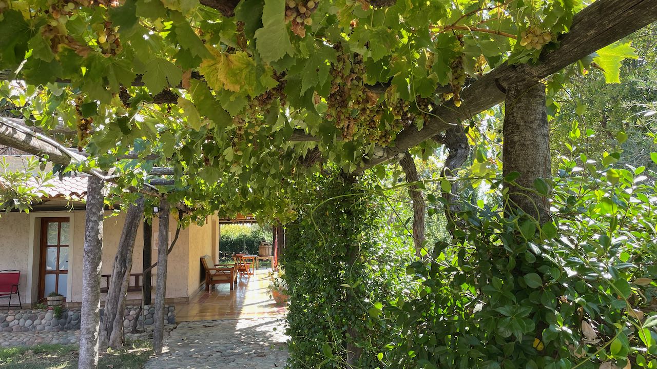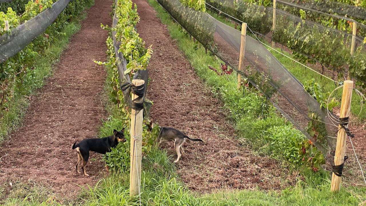 Die Sonne streicht über die Weinreben, untermalt von uns fremden Vogelstimmen. Zwei Streunerwelpen pflücken sich ein paar Weintrauben.