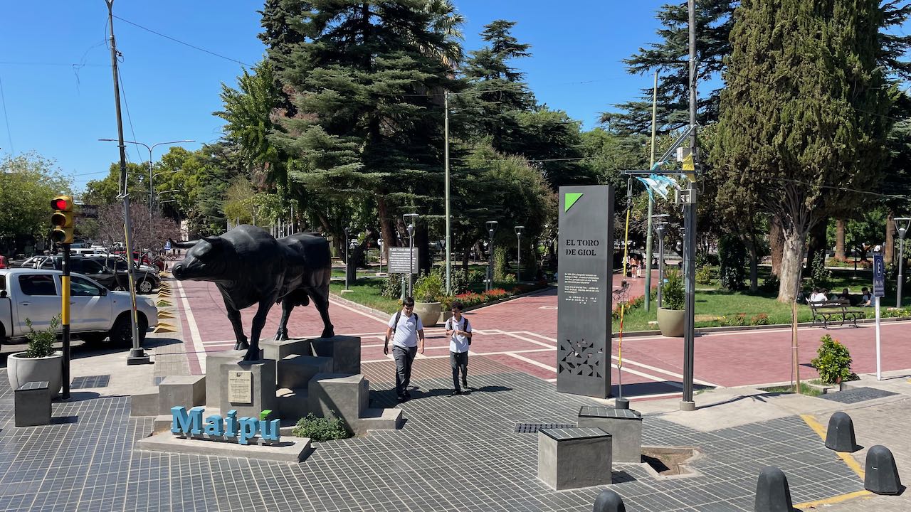Adios Maipú. Vorbei an der Statue des Toro de Giol, das Symbol der Tradition, Stärke und Mut des Maipucino Volkes