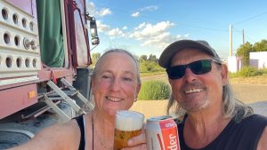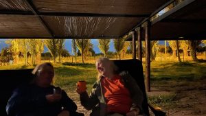 Wir sitzen noch eine Stunde draußen im Schatten, in der Dämmerung kommen Mückenschwärme und saugen uns aus. Wir flüchten ins Auto, aber auch hier lauern die Sauger auf uns……selten wurden wir so zerstochen.