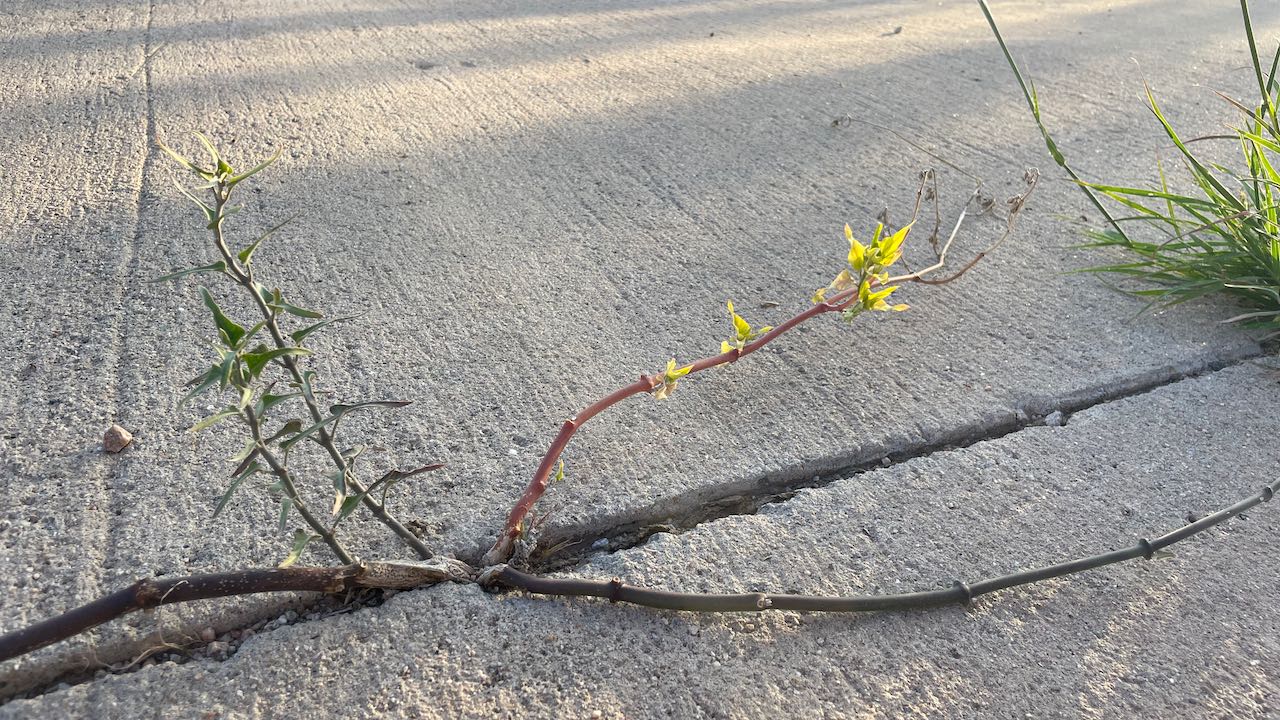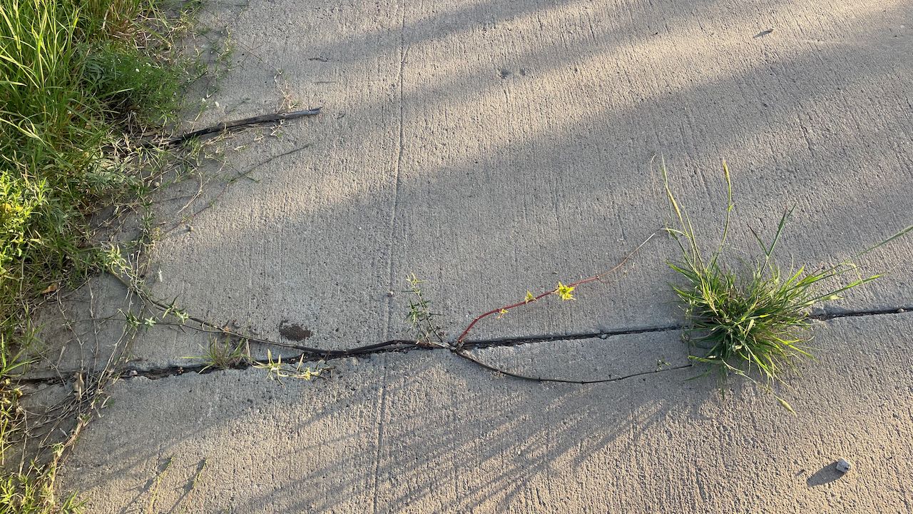 Schöne Blumen quetschen sich durch Asphat und Schotter
