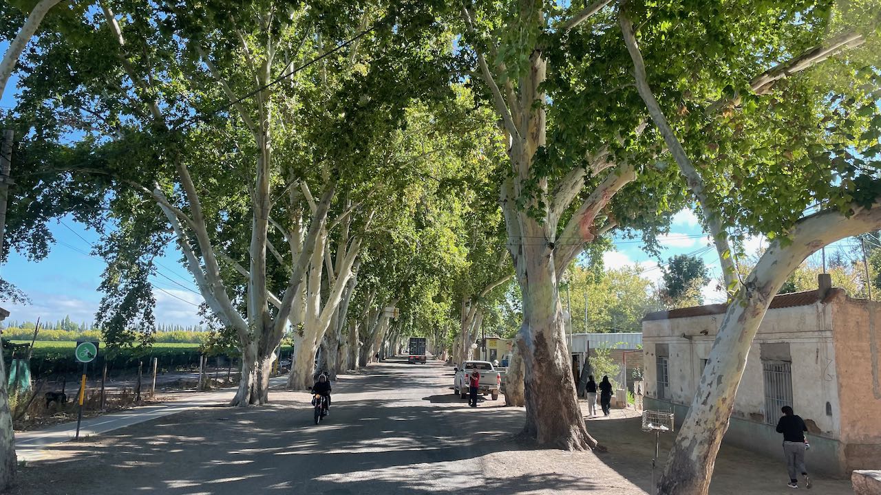 In Maipú gibt es eine Markthalle. Vorm Frühstück satteln wir die Dax und sausen los. Durch die Alleen, vorbei an leuchtenden Feuerdornhecken und Olivenhainen
