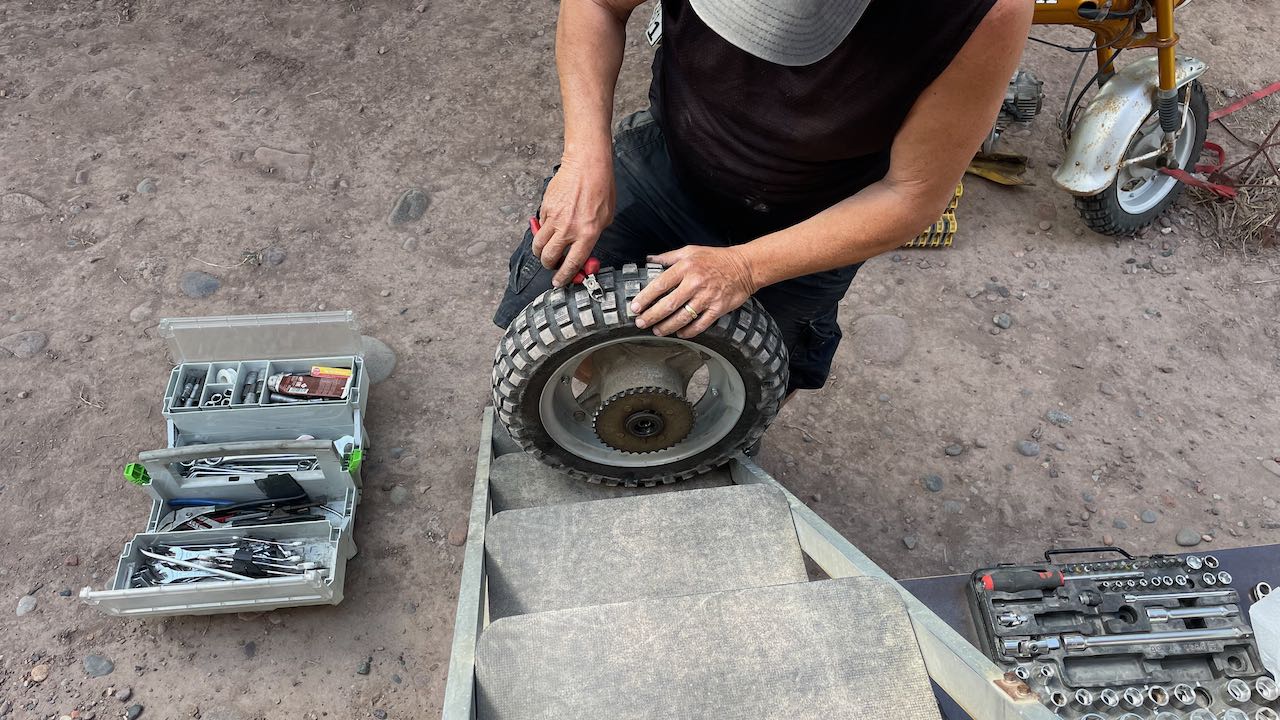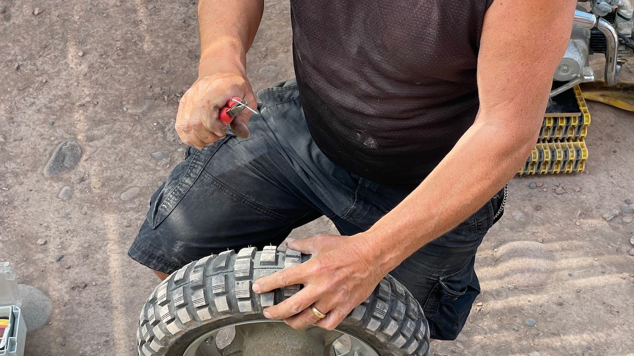 So vergeht der Nachmittag anders als gedacht. Martin zieht einen langen Nagel aus dem Reifen.
