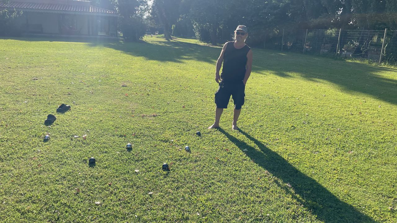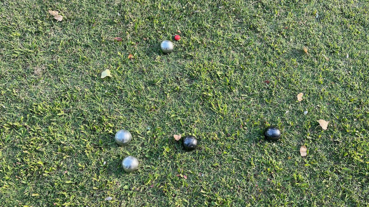 Später Wimbledon-Petanque auf dem Rasen. Die Kugeln springen und rollen nur kurz, sehr interessant.
