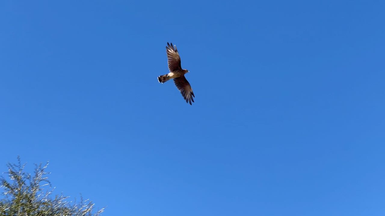 Laute Rufe, 7 oder 8 Bussarde schweben über uns. Mit ihrer Spannweite von bis zu 1,40 Metern sind sie beeindruckend groß