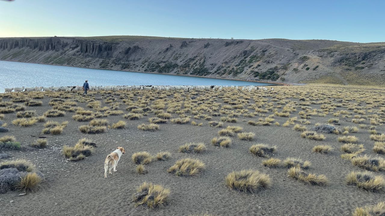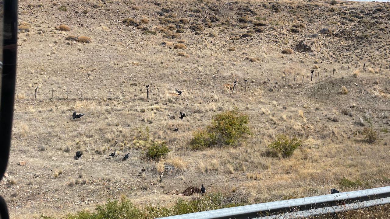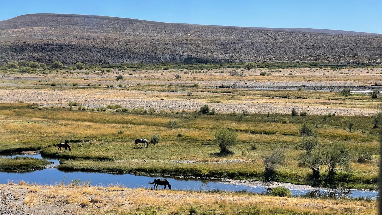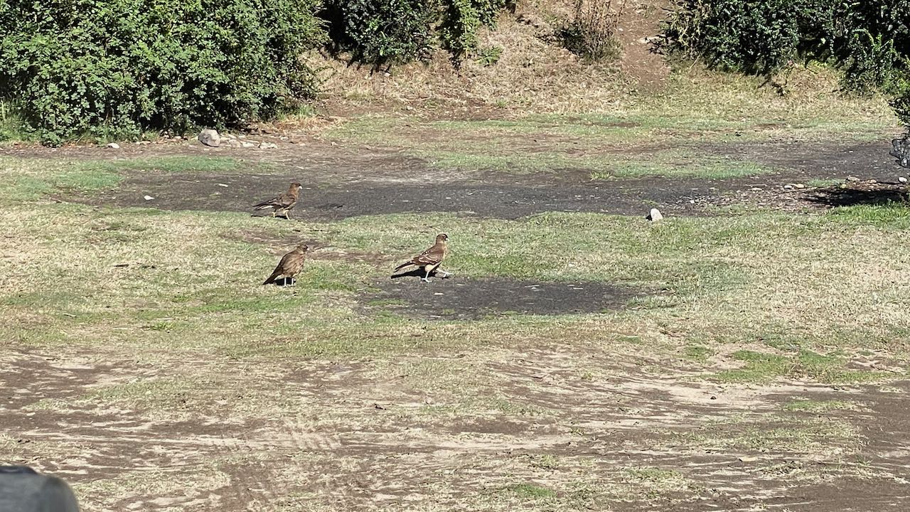 Morgens am Rio Pichi Traful. Auf den Grashalmen glitzert noch der Tau. Stolze Andenbussarde schreiten über die Wiese und suchen Futter.