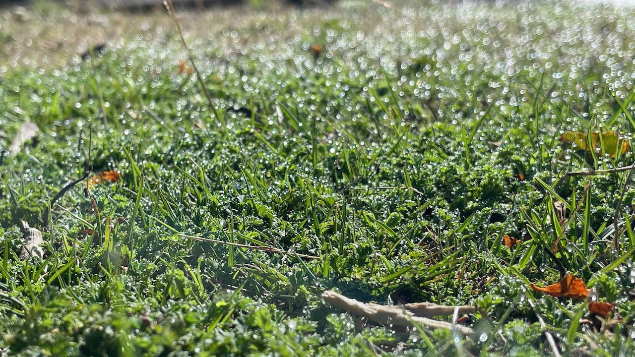 Am Wiesengrün erkennt man genau, wo Wasser den Berg hinunterfliesst