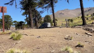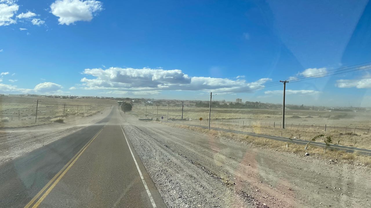 Aufkommender Sturmwind jagt Staubwolken über die Piste und biegt die Bäume. Unser Dachgepäckträger pfeift ein nervtötendes Lied dazu…..Seit 6 Stunden sind wir unterwegs, Zeit für Feierabend. Vor uns liegt Zapala im Staubnebel, dort hoffen wir auf einen Übernachtungsplatz.