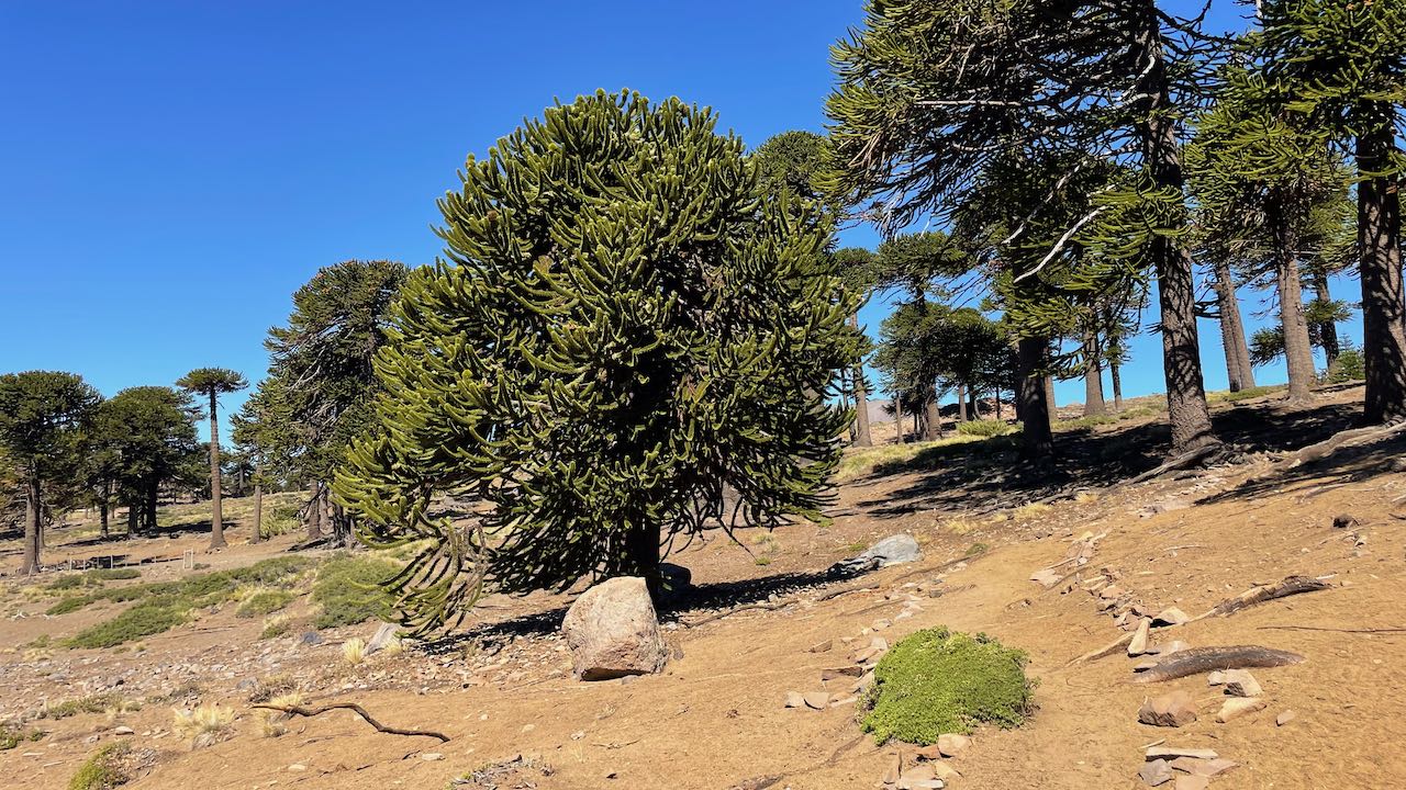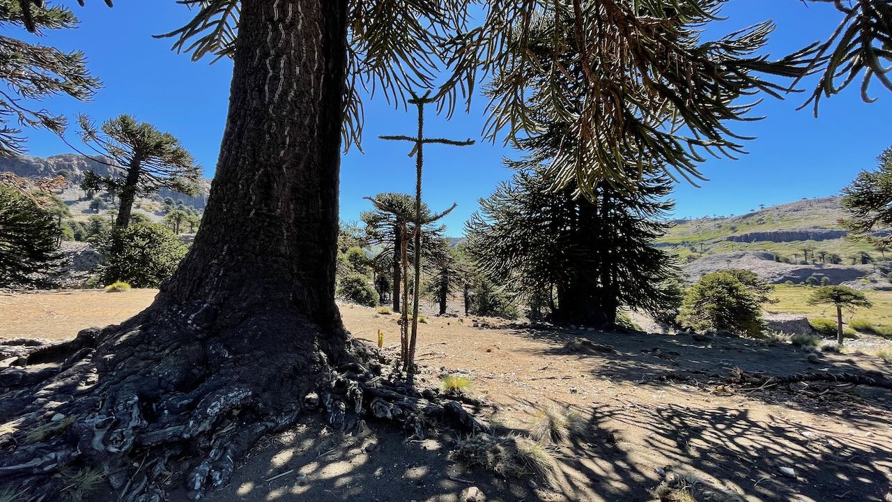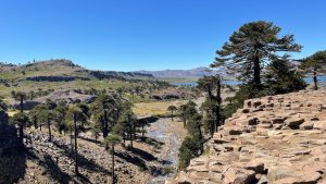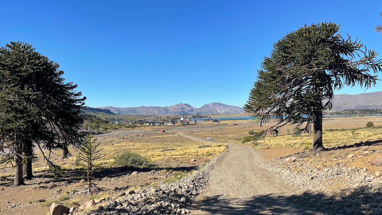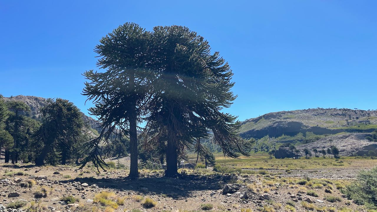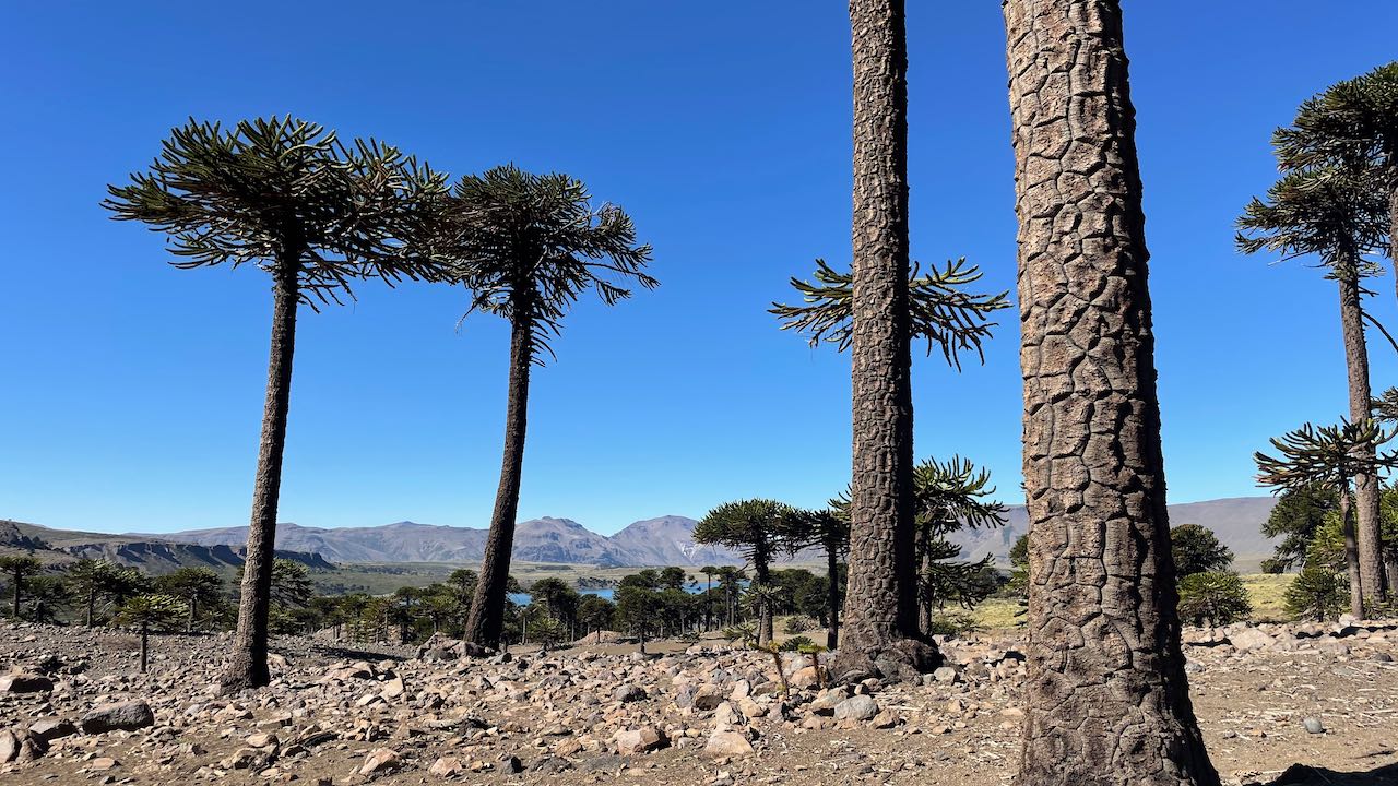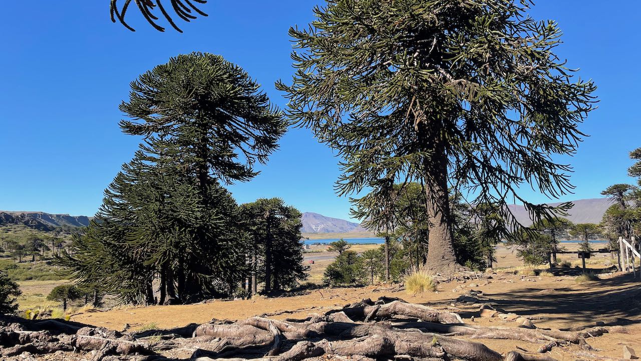 Das Südufer des Lago Caviahue, wunderschön! Wir sehen unsere ersten Araukarien in freier Wildbahn. Kein Vergleich zu den armen Dingern in deutschen Vorgärten.