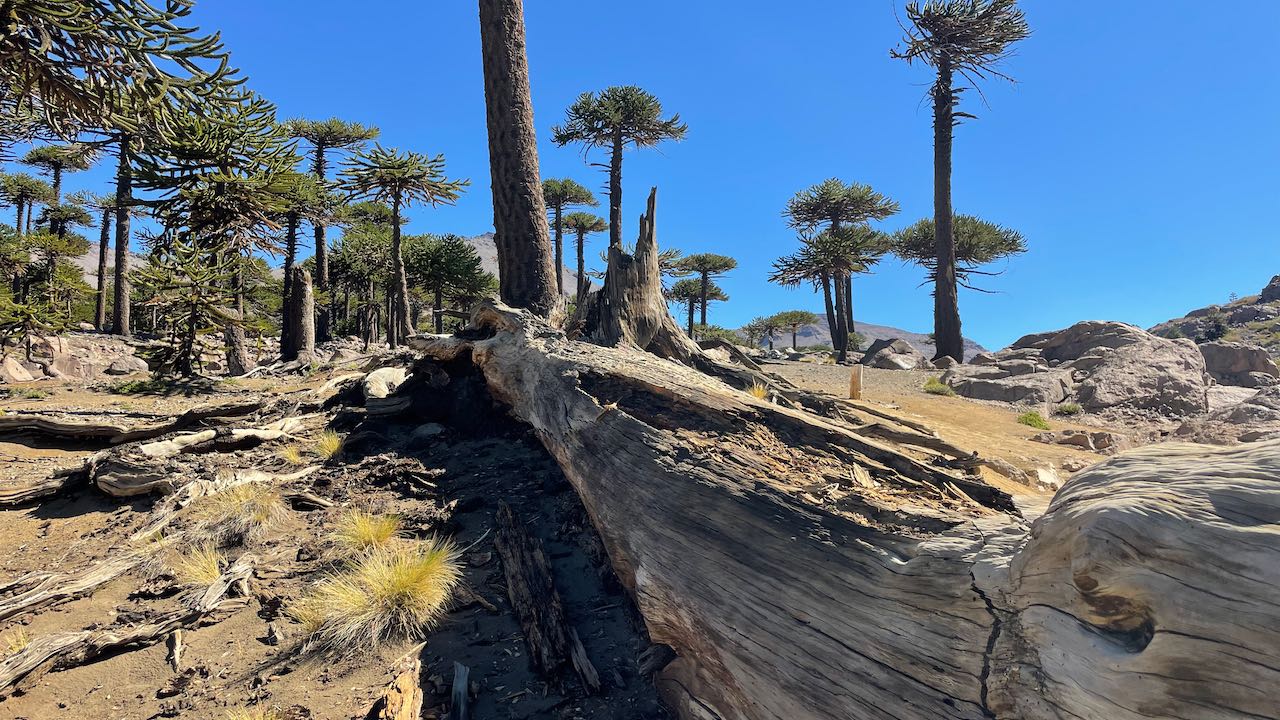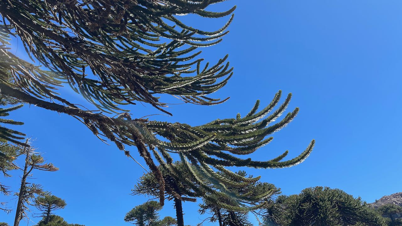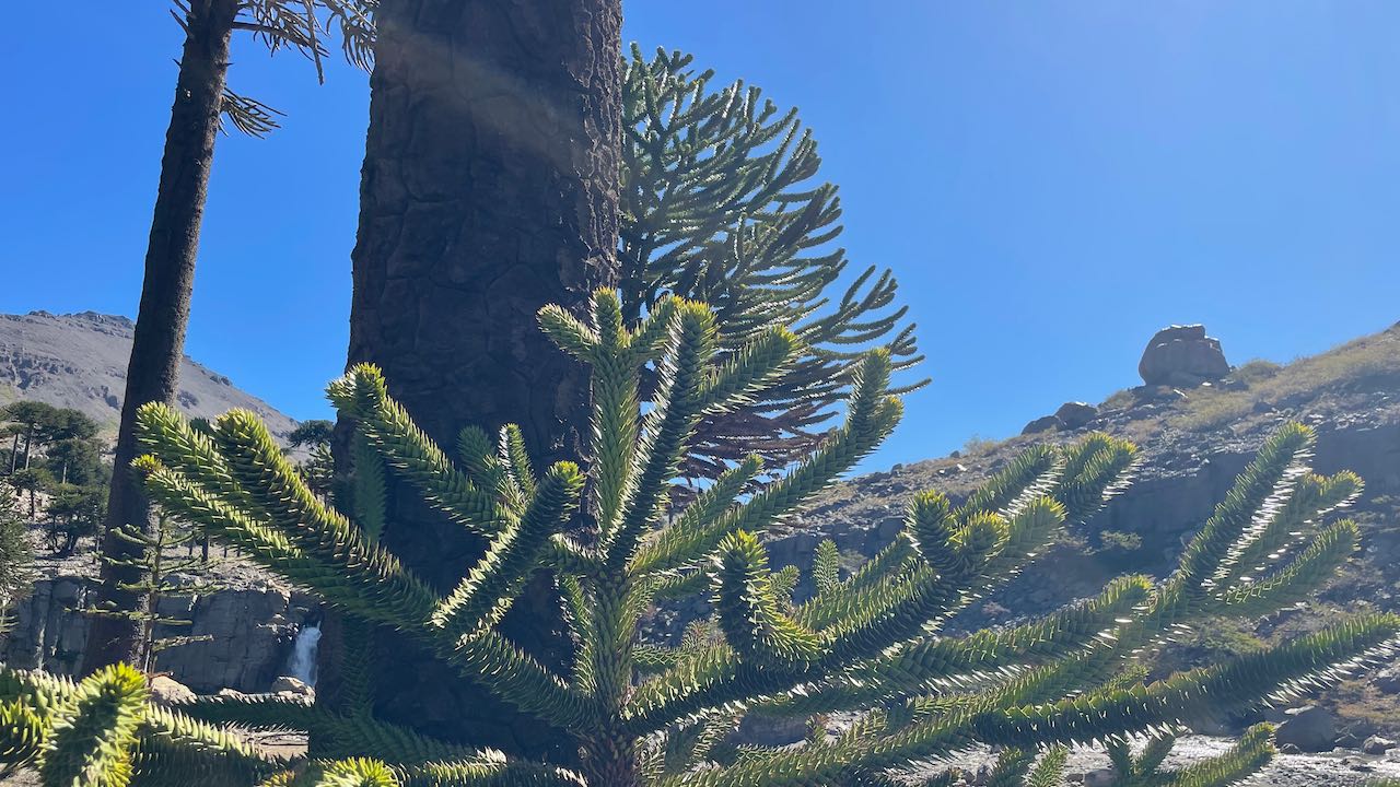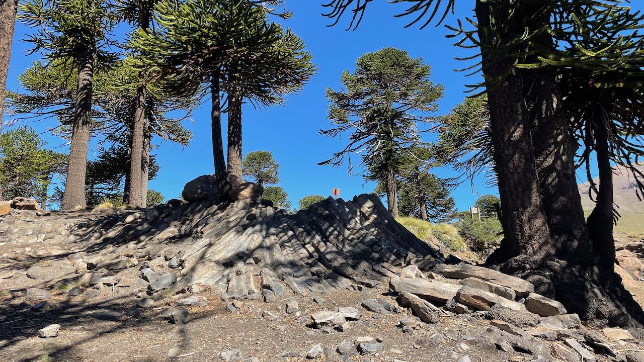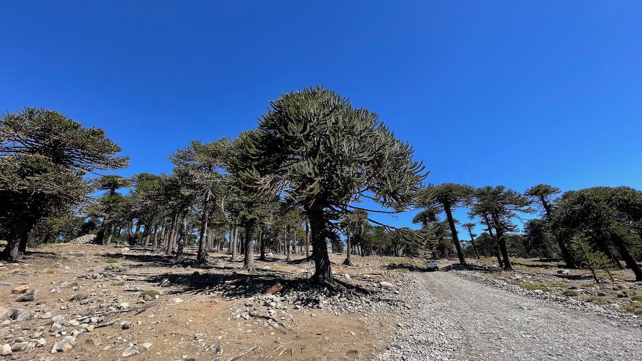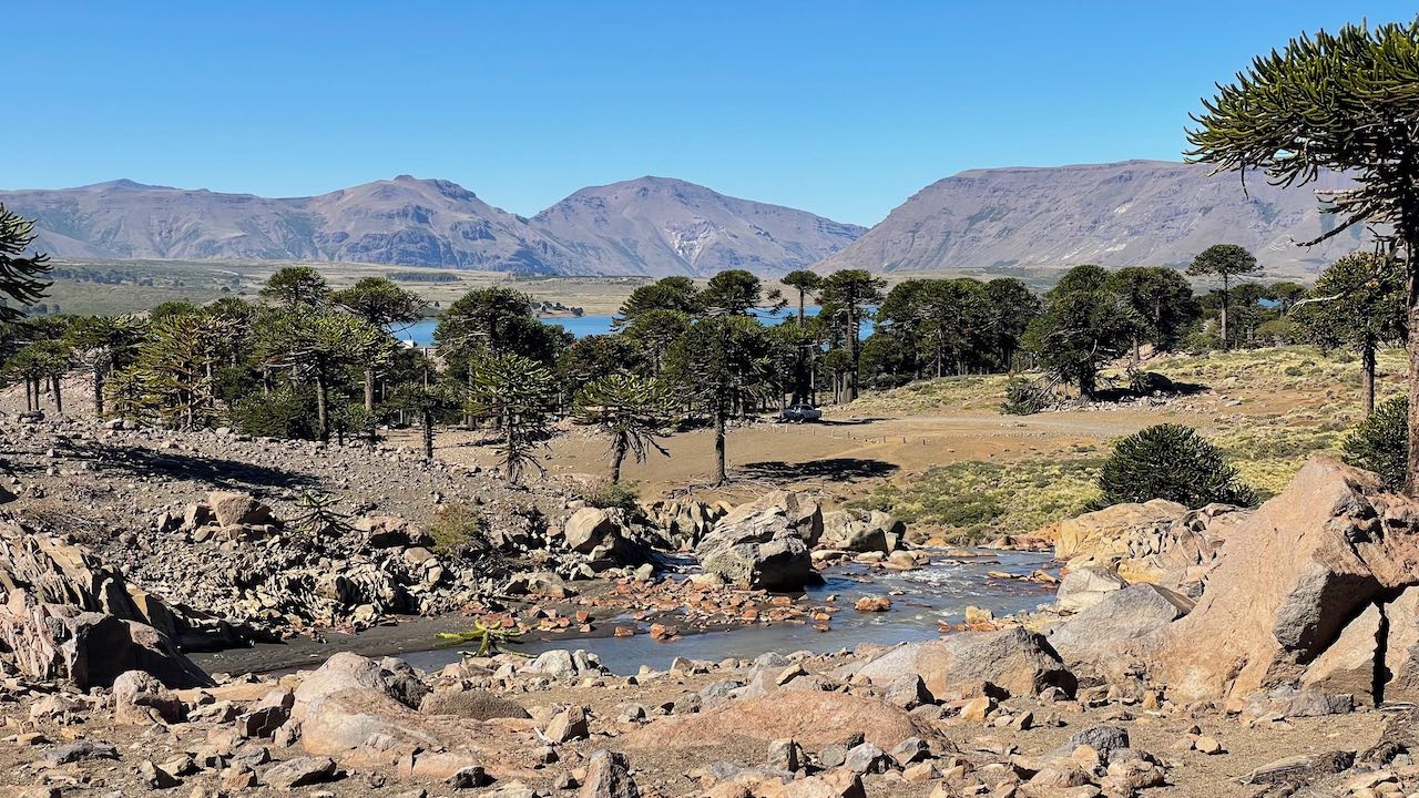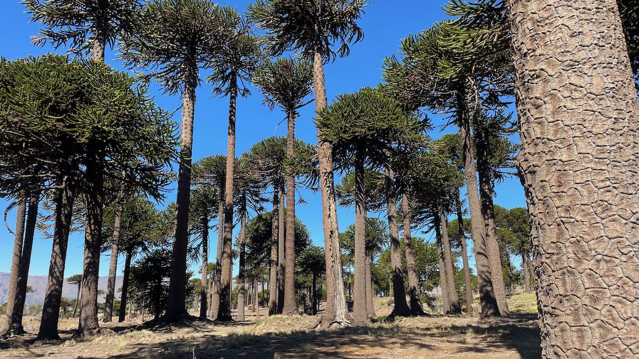 Das Südufer des Lago Caviahue, wunderschön! Wir sehen unsere ersten Araukarien in freier Wildbahn. Kein Vergleich zu den armen Dingern in deutschen Vorgärten.