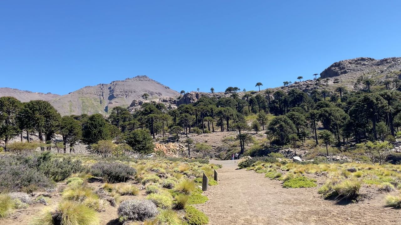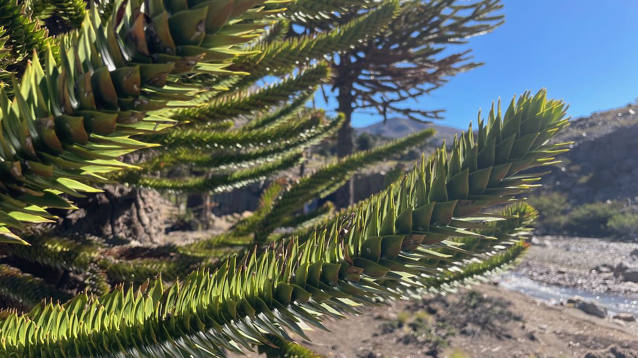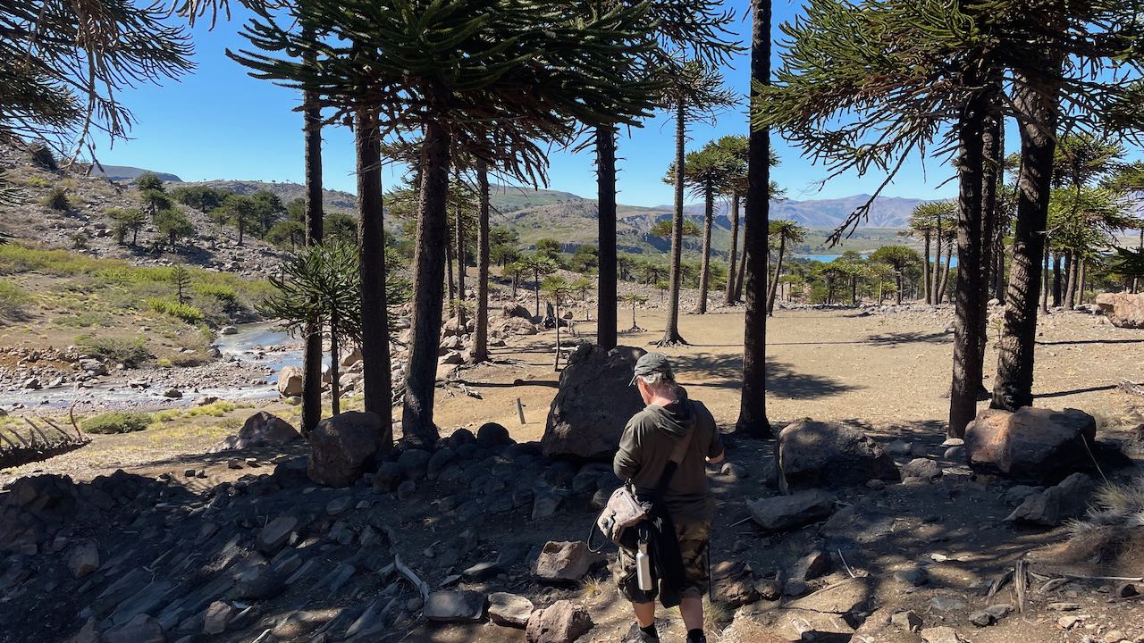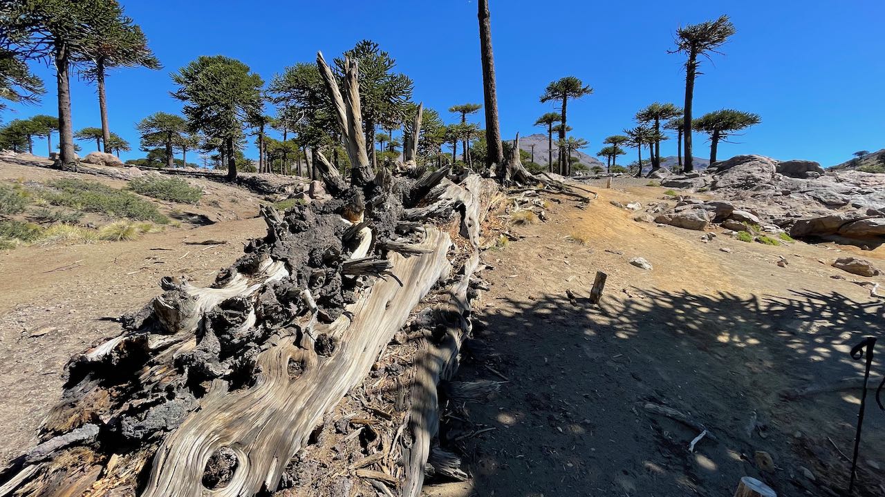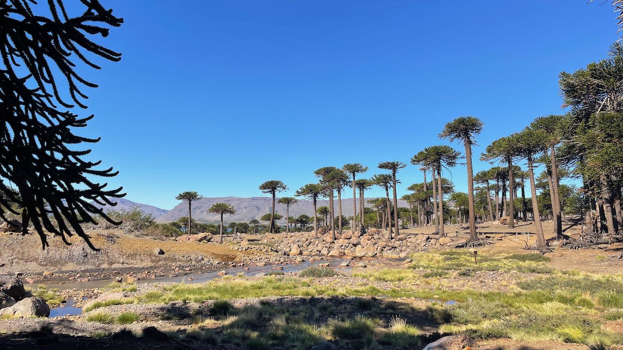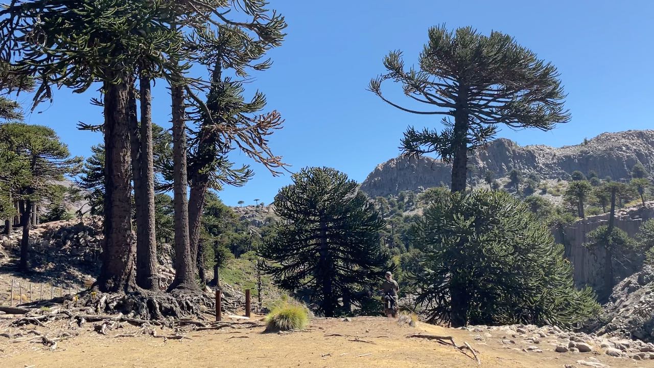 Das Südufer des Lago Caviahue, wunderschön! Wir sehen unsere ersten Araukarien in freier Wildbahn. Kein Vergleich zu den armen Dingern in deutschen Vorgärten.