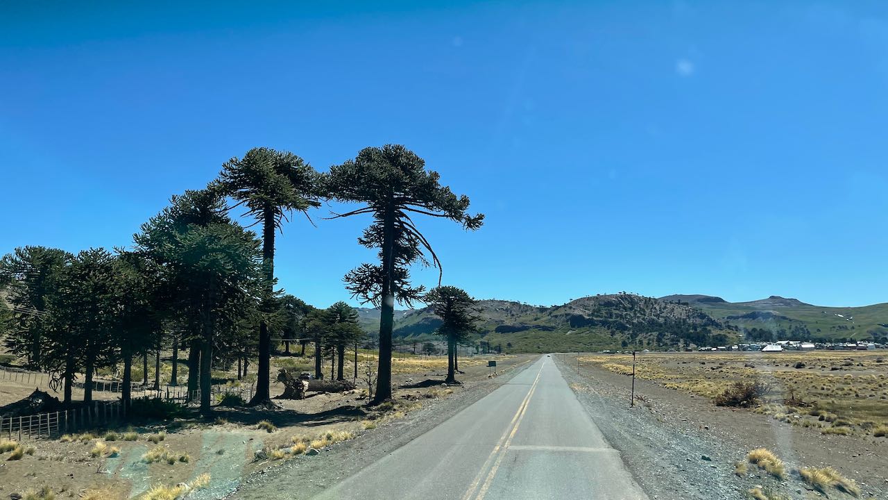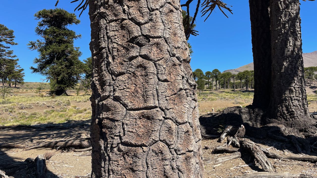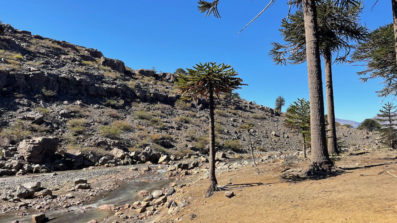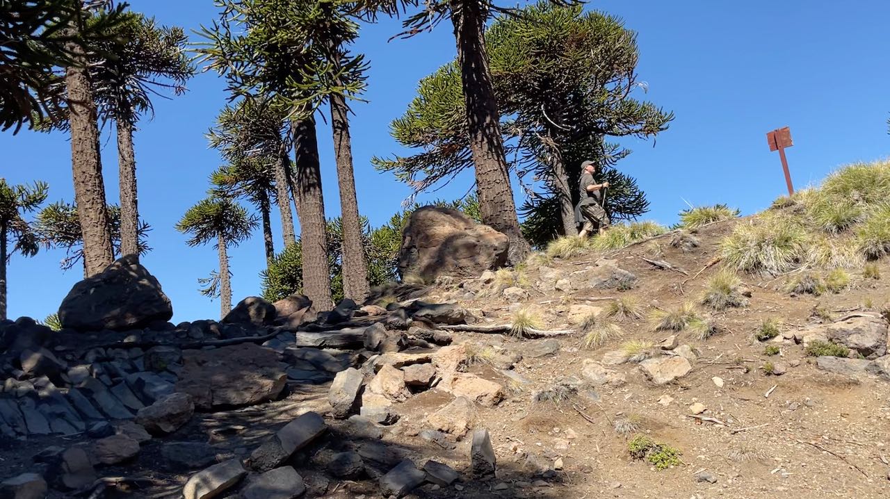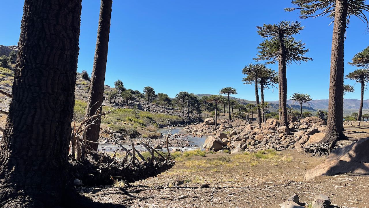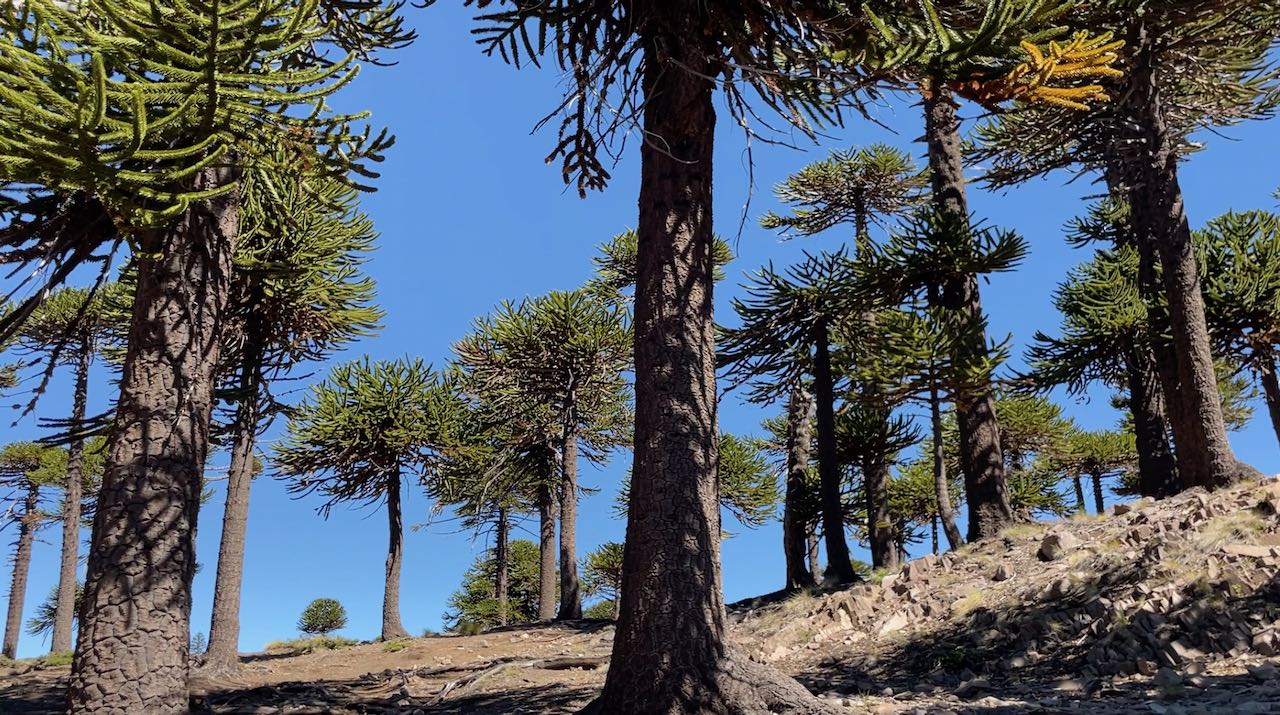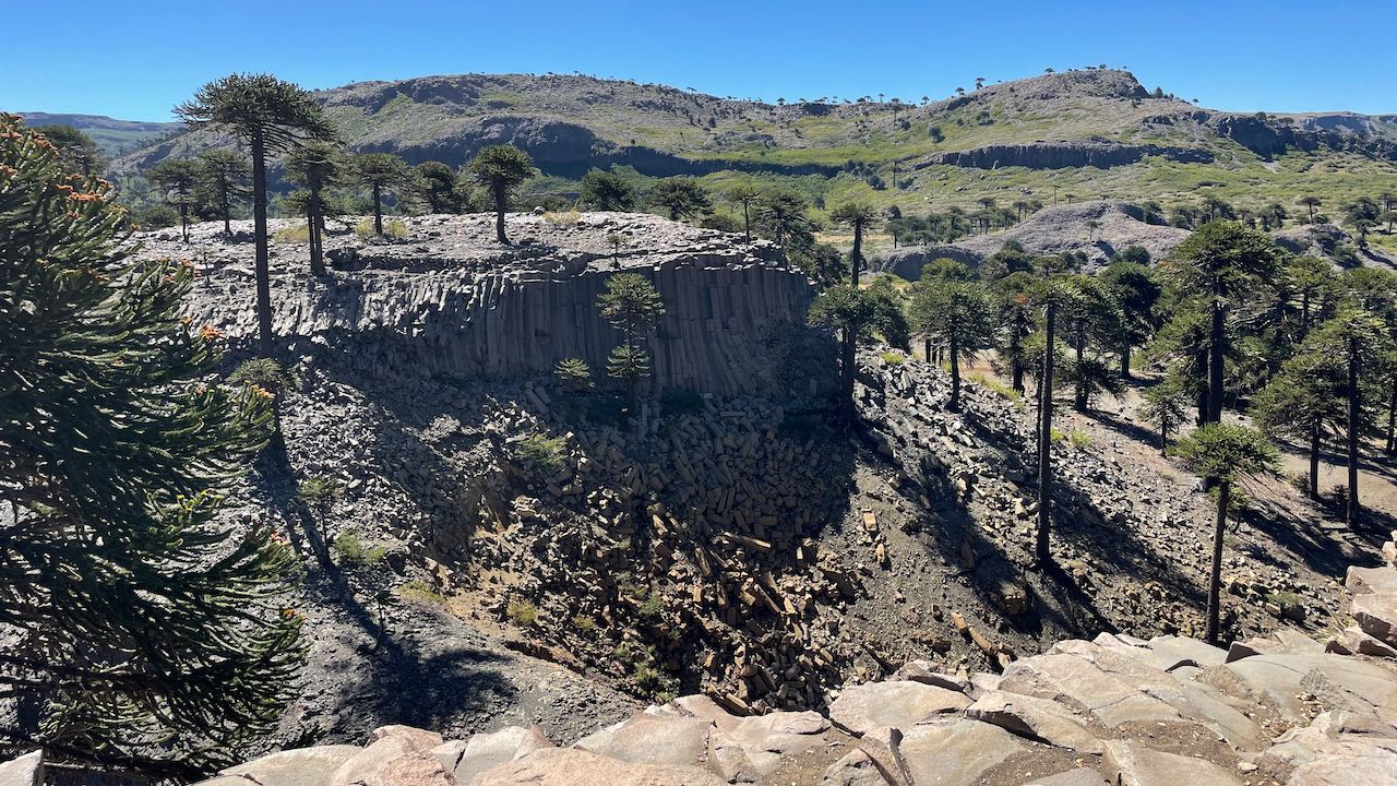 Das Südufer des Lago Caviahue, wunderschön! Wir sehen unsere ersten Araukarien in freier Wildbahn. Kein Vergleich zu den armen Dingern in deutschen Vorgärten.
