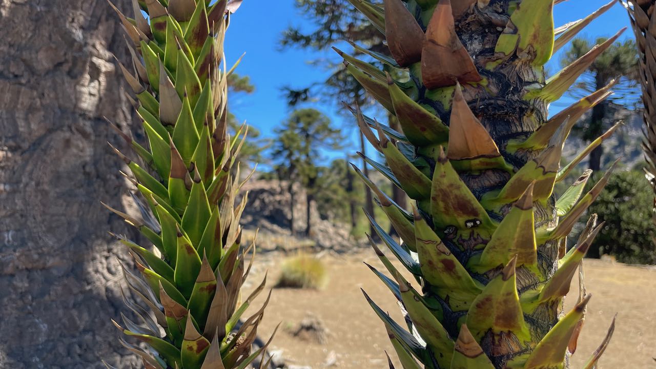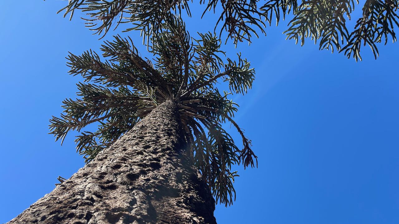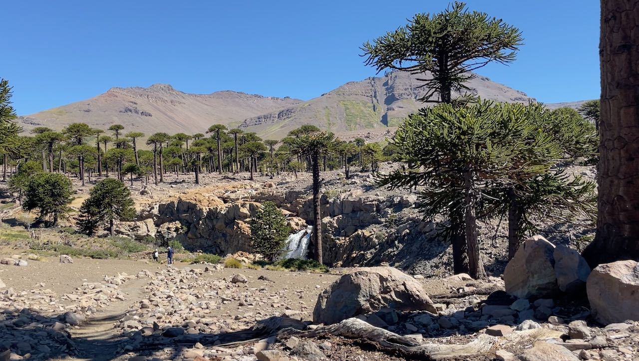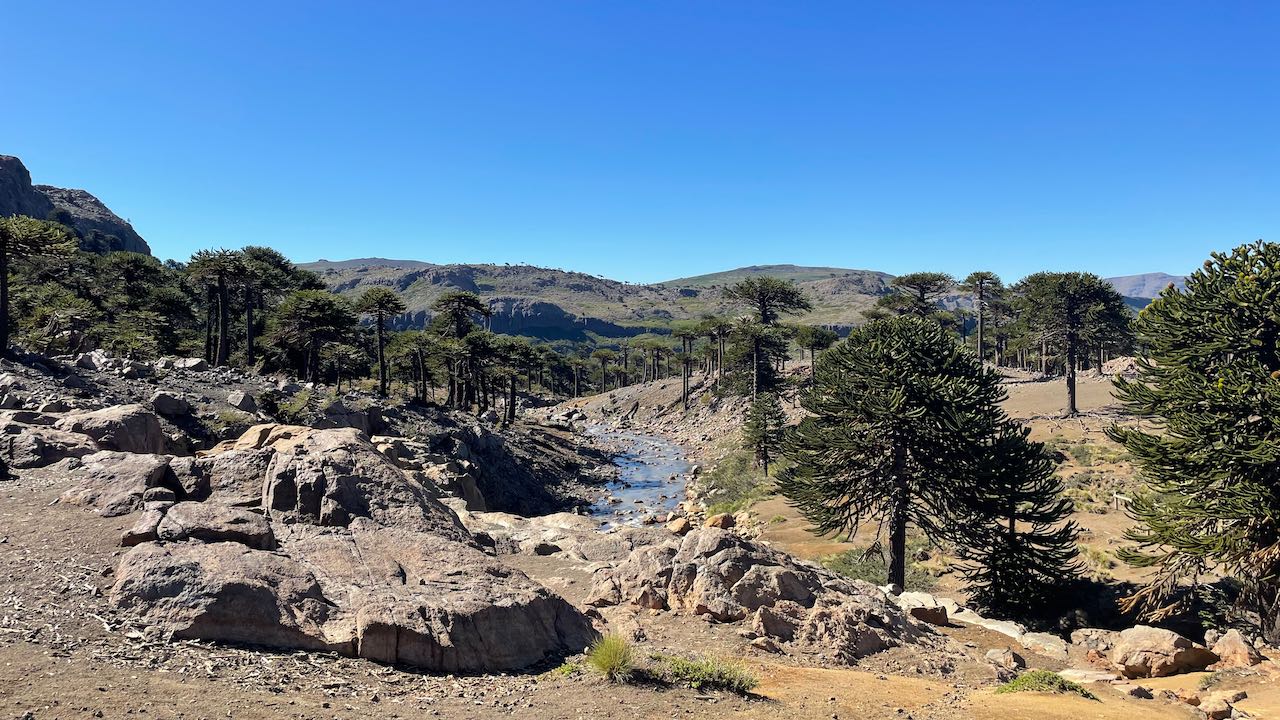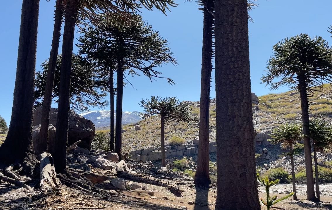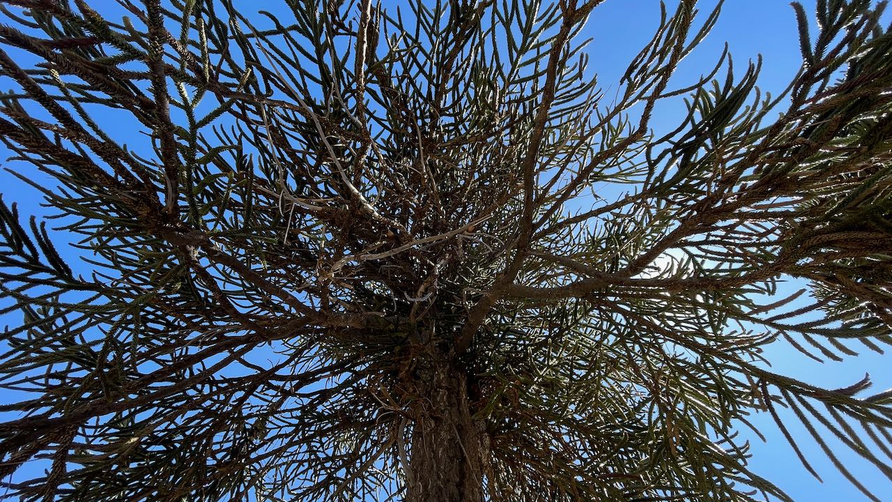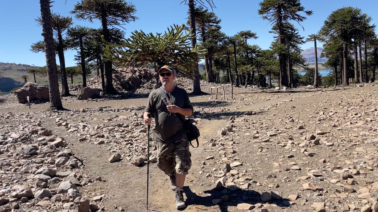 Das Südufer des Lago Caviahue, wunderschön! Wir sehen unsere ersten Araukarien in freier Wildbahn. Kein Vergleich zu den armen Dingern in deutschen Vorgärten.