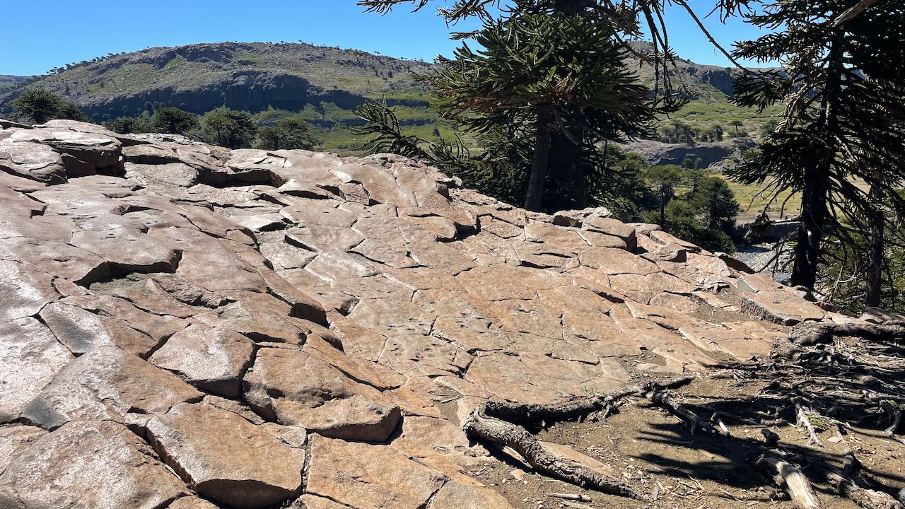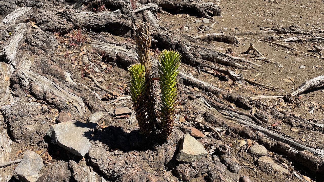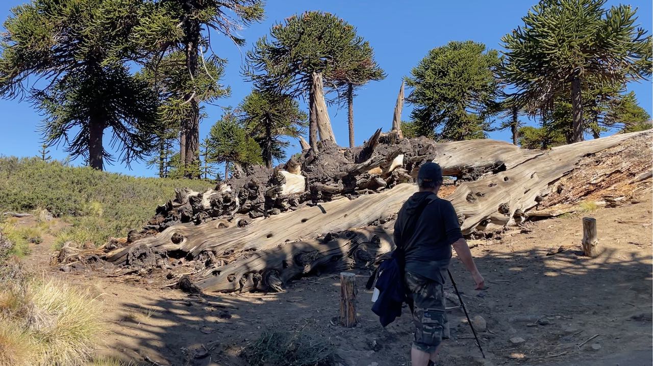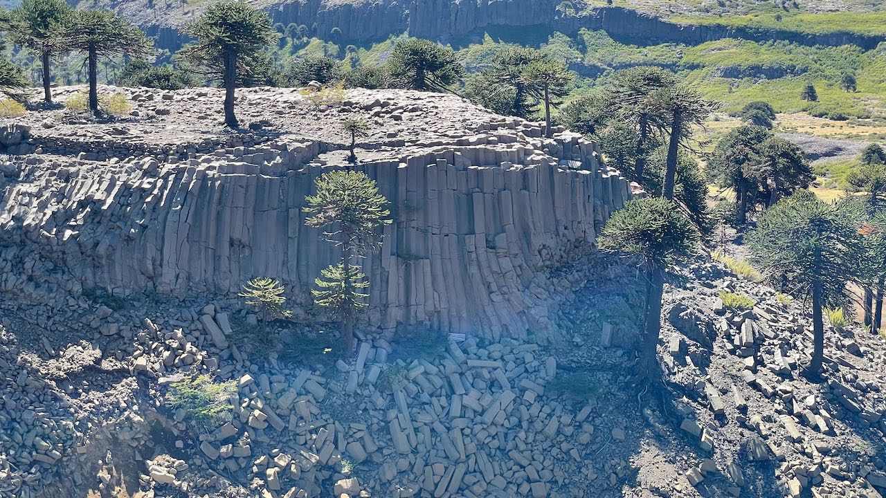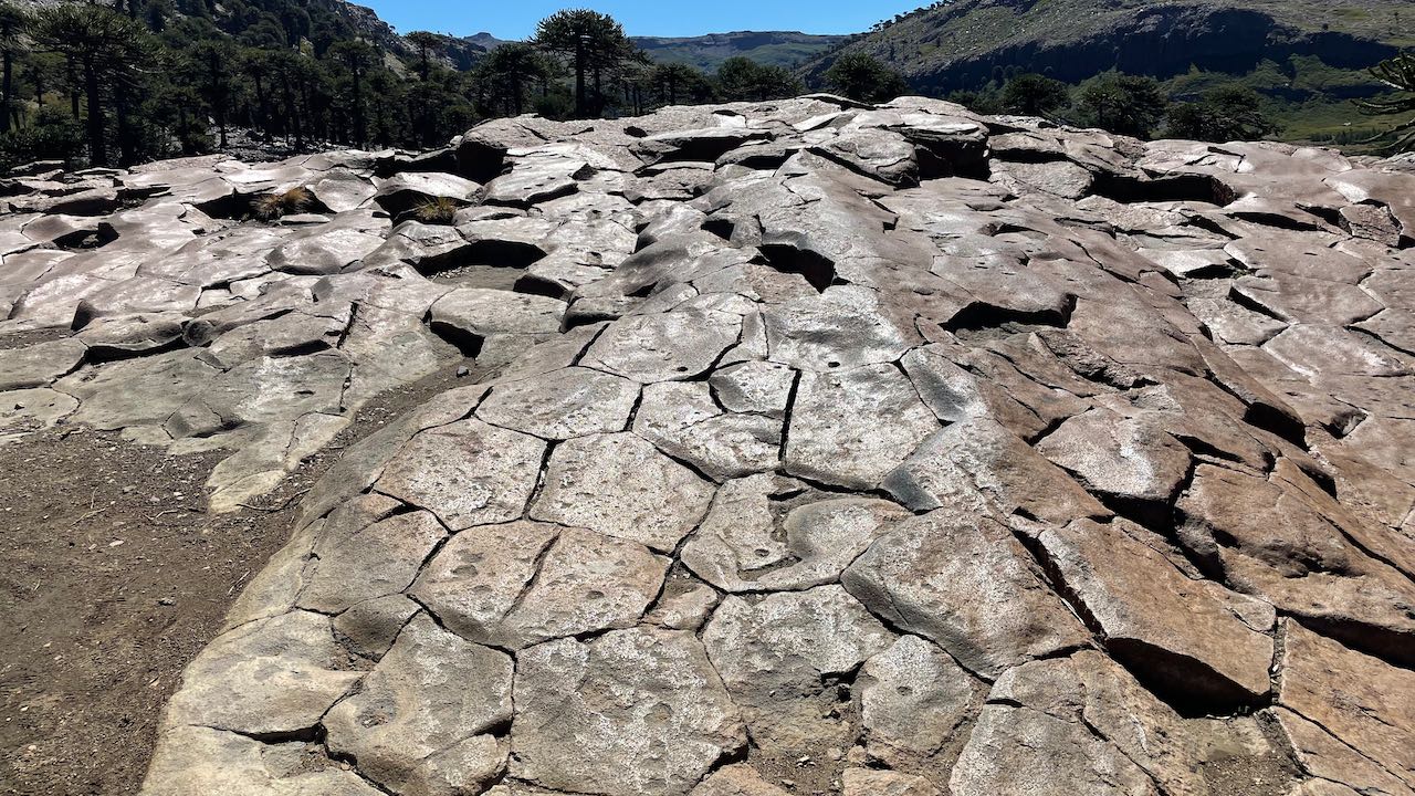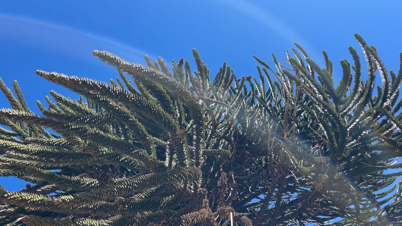 Das Südufer des Lago Caviahue, wunderschön! Wir sehen unsere ersten Araukarien in freier Wildbahn. Kein Vergleich zu den armen Dingern in deutschen Vorgärten.