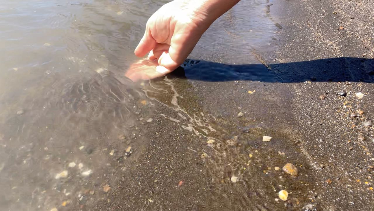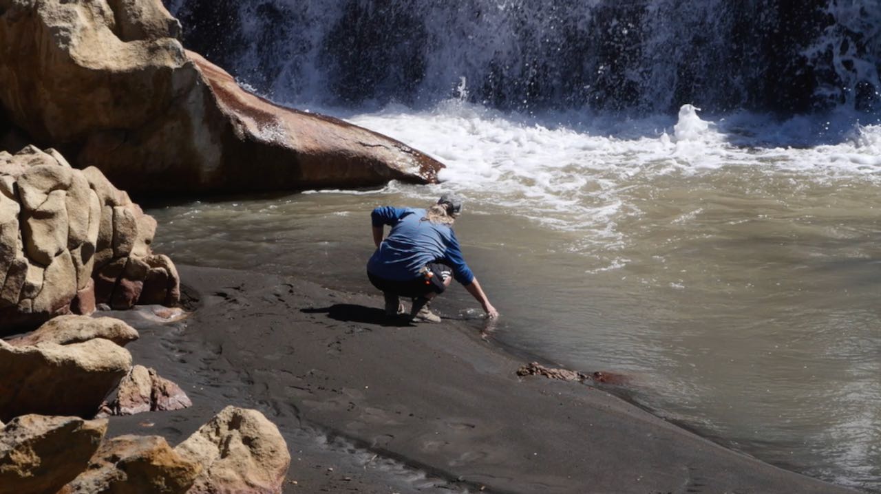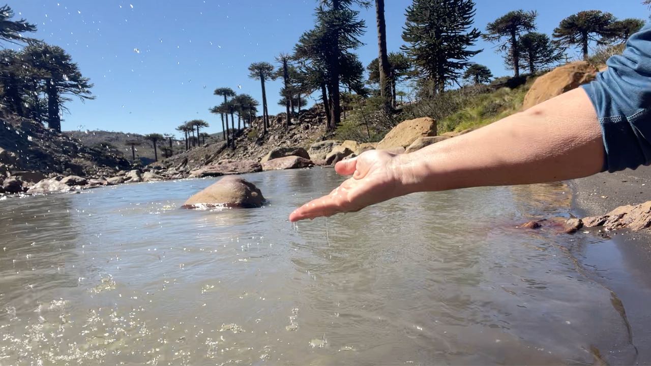 Ich teste die Wassertemperatur im Fluss. Ein Untergrund aus glitschigen Steinen, ruckzuck frieren die Knöchel ein, so eisig ist das Wasser. Kein Badevergnügen hier.