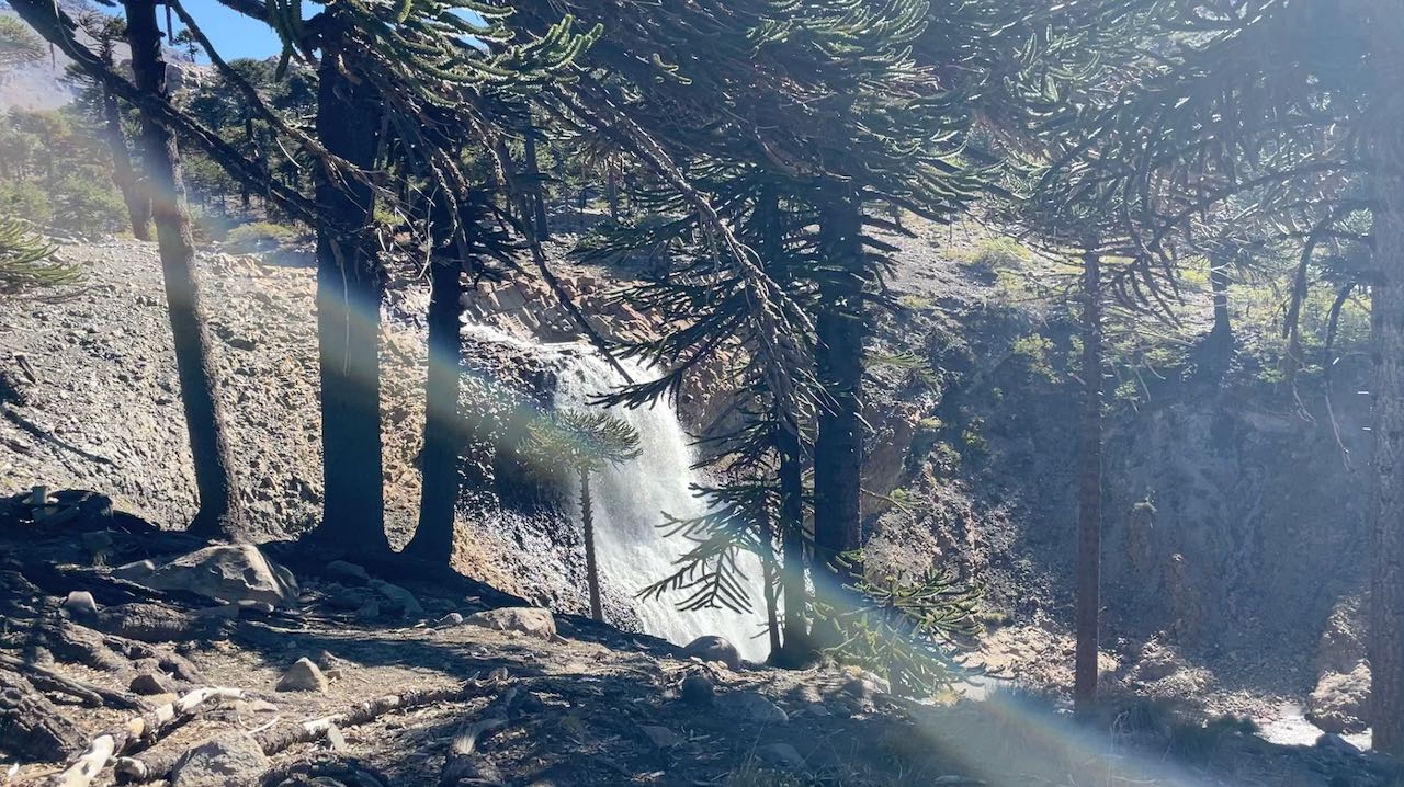 Begleitet vom Rauschen des Rio Agrio spazieren wir den Hang hinunter, freuen uns über die wunderbare Landschaft