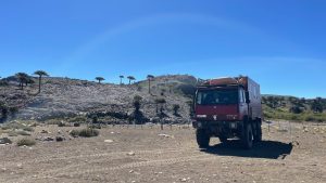 Klar! In Windeseile räumen wir zusammen und manovrieren Rappelkiste in Abschleppposition. Fünf Jungs schauen gebannt zu, natürlich haben sie kein Abschleppseil, auch da können wir helfen. Alle bemühen sich, mit anzupacken, sie sind alle sehr nett. Und erleichtert, das wir kommen.