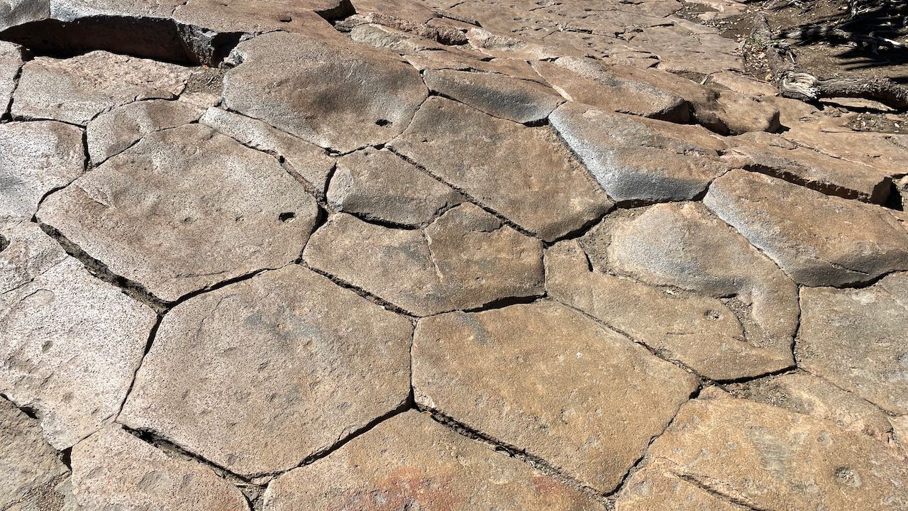 Noch etwas weiter hinauf stehen wir auf glänzendem Basaltparkett.