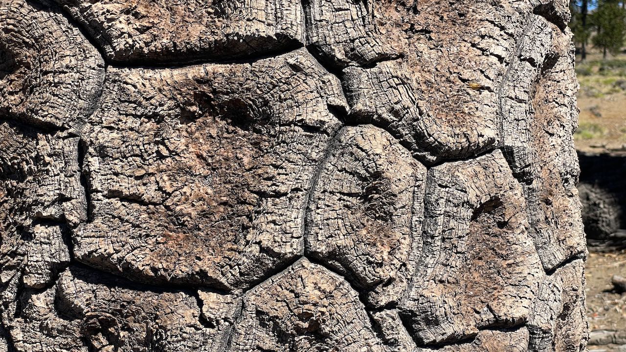 Die Borke knorrig, wie ein Dinosaurierpanzer