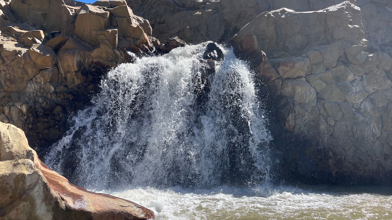 Der zweite Wasserfall. Wunderschön fällt das Wasser über die Felsen hinab, Cabellera de la Virgen, Jungfrauhaar.