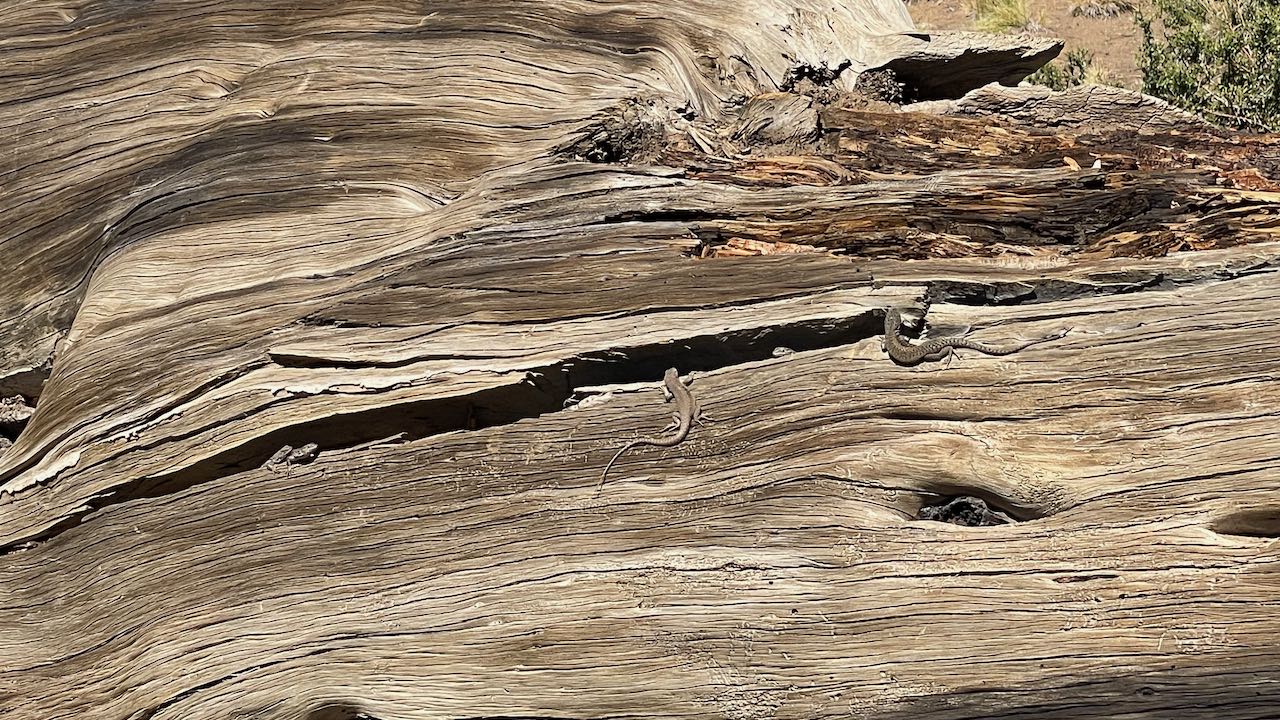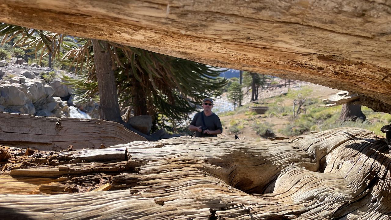 An einem umgestürzten Baumriesen bestaunen wir die Größe und Knorrigkeit