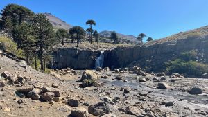 Martin hat gestern eine schöne Wanderung zu den Cascadas del Agrio ausbaldowert. Vier Wasserfälle am Lago Caviahue, etwas abseits unserer eigentlichen Route. Gerne zweigen wir wieder ab von der R40, denn die ist und bleibt ziemlich langweilig.