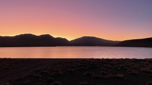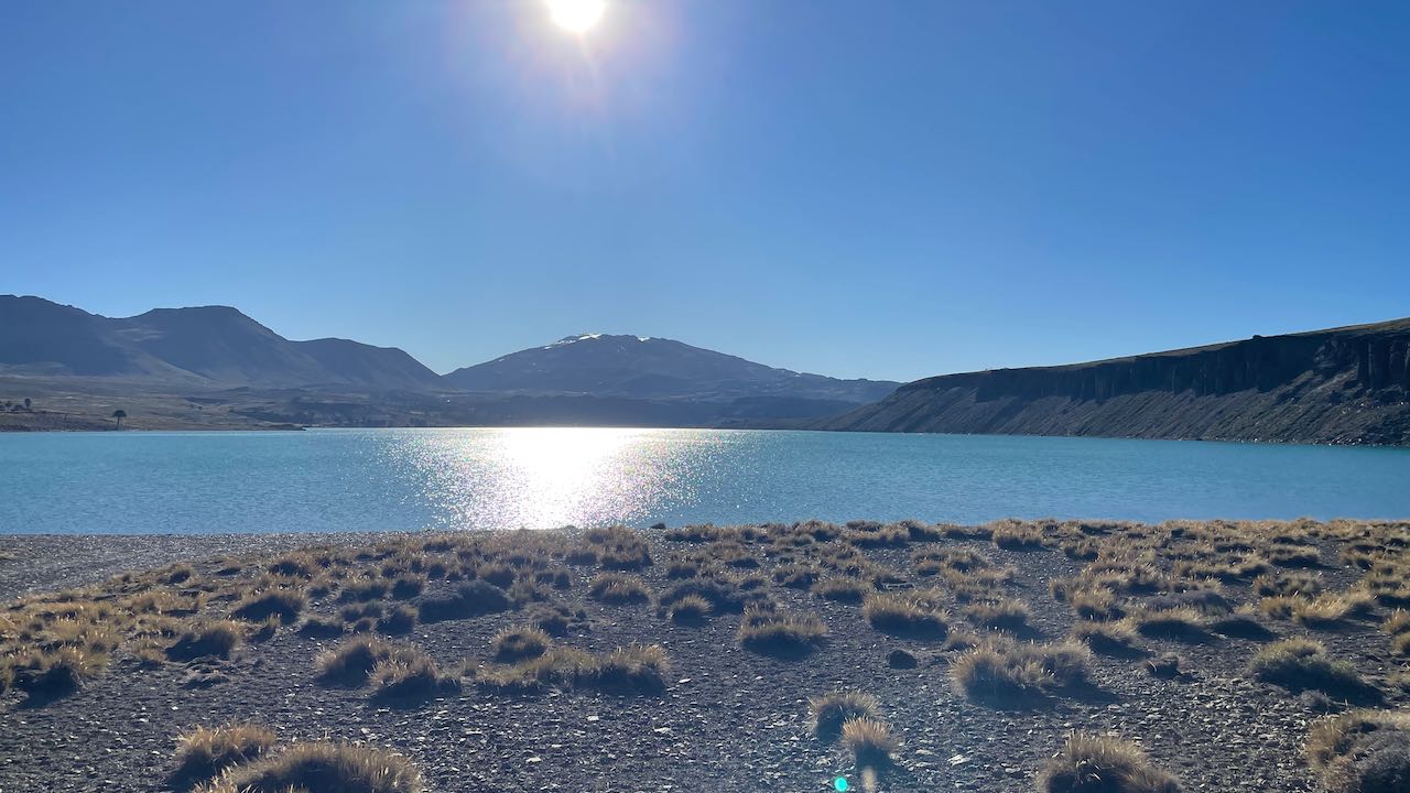 Wir fahren runter zum See, dort haben wir bei der Hinfahrt schon mehrere gute Plätze gesichtet. Mit Blick auf den Volcano sitzen wir in der Sonne und freuen uns über diesen wunderschönen Tag.