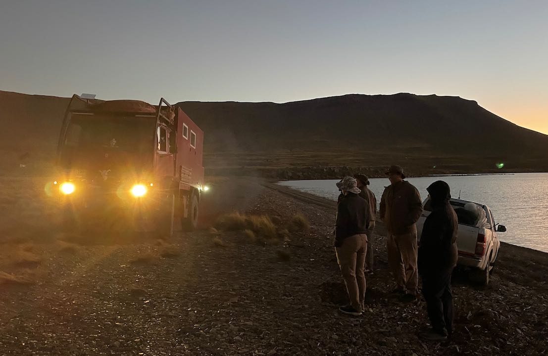Draußen stehen zwei junge Argentinier. Sie haben ihren Wagen im Kiesstrand versenkt, ob wir sie rausziehen können?