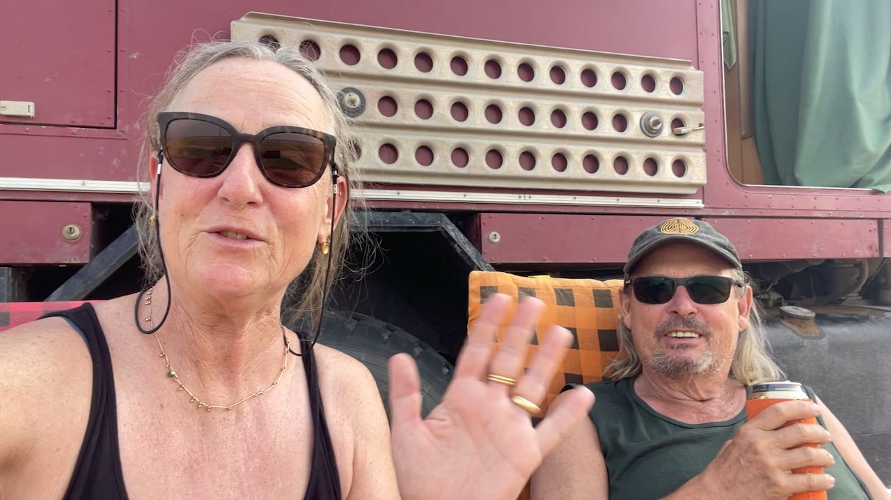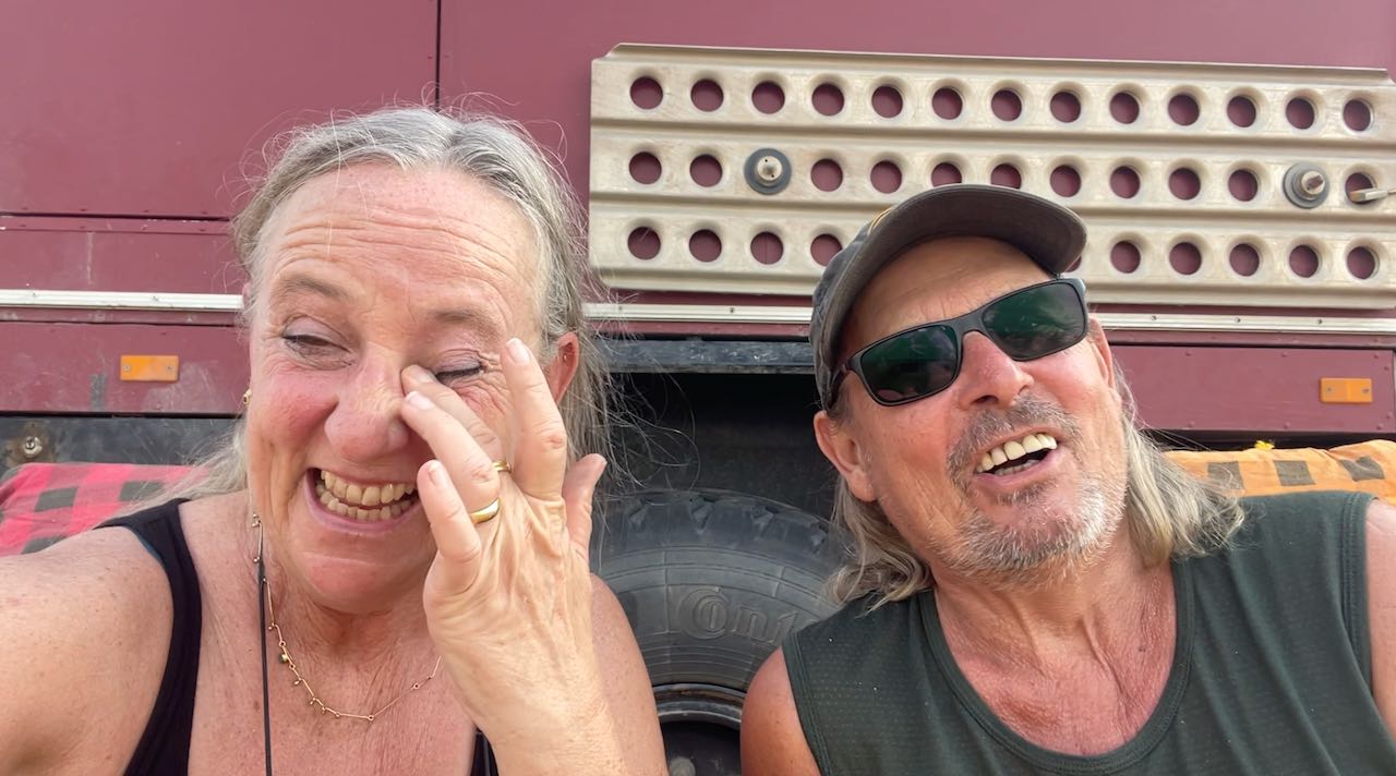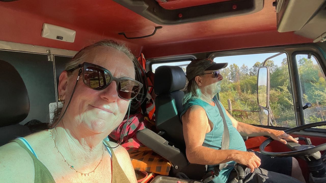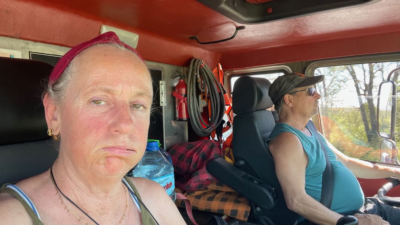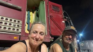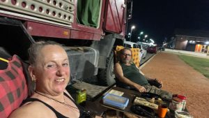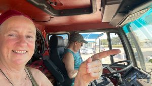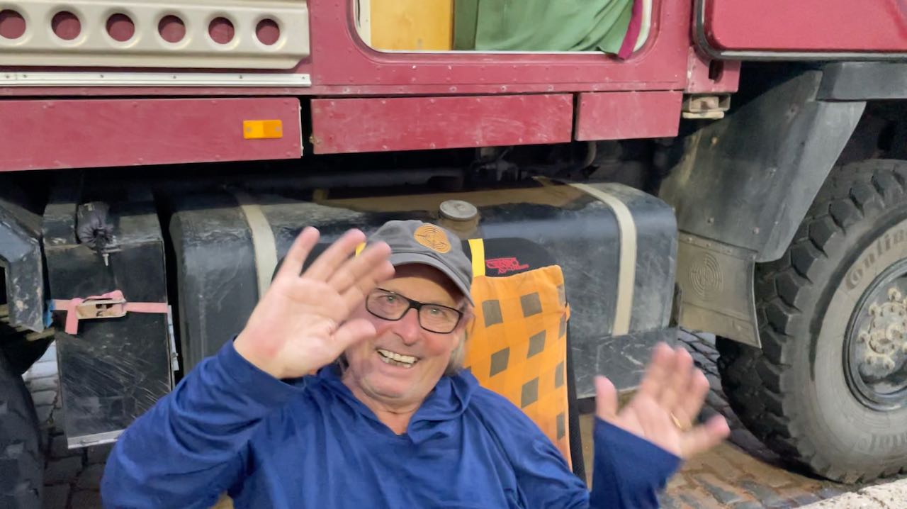 Während wir kochen, schieben sich zwei LKWs bis auf einen halben Meter an unser Küchenfenster heran. Der eine Fahrer sinkt sofort schlafend aufs Lenkrad, der Motor läuft noch eine Weile weiter, er stellt ihn erst später ab, als er kurz aufwacht.