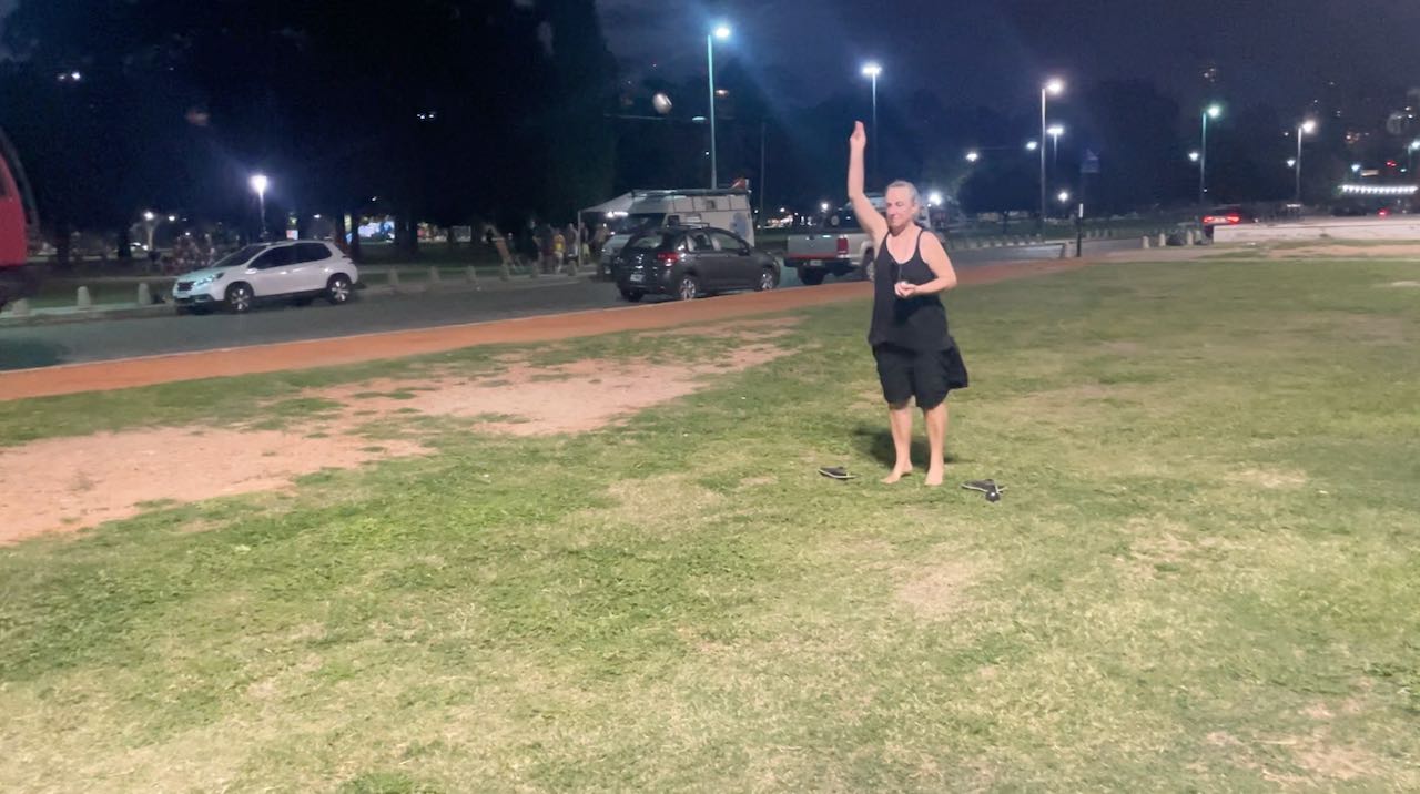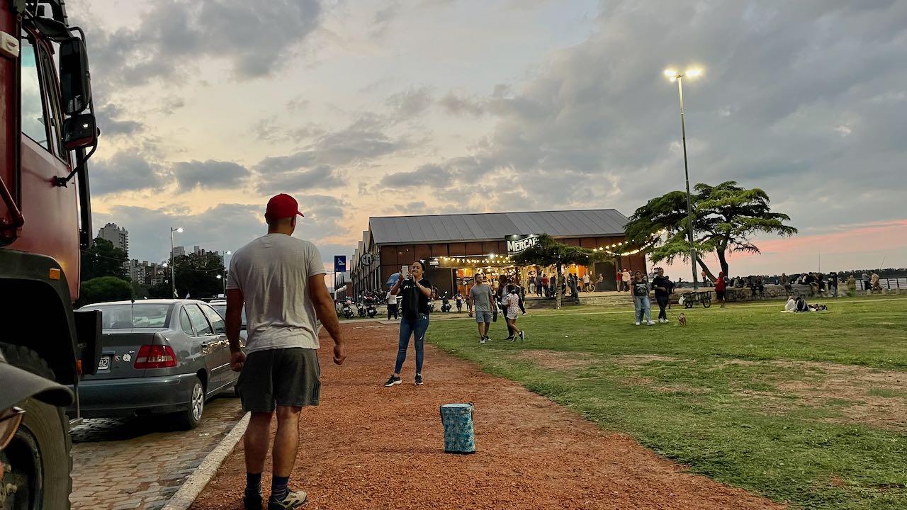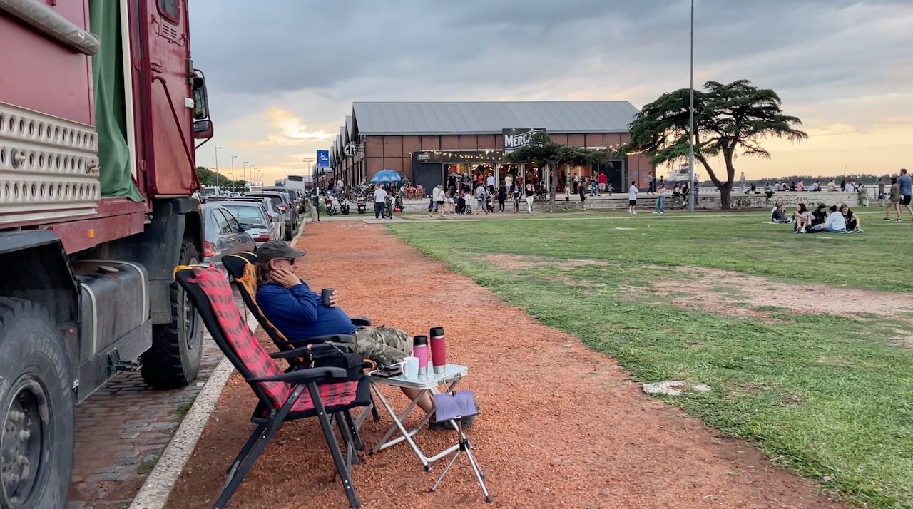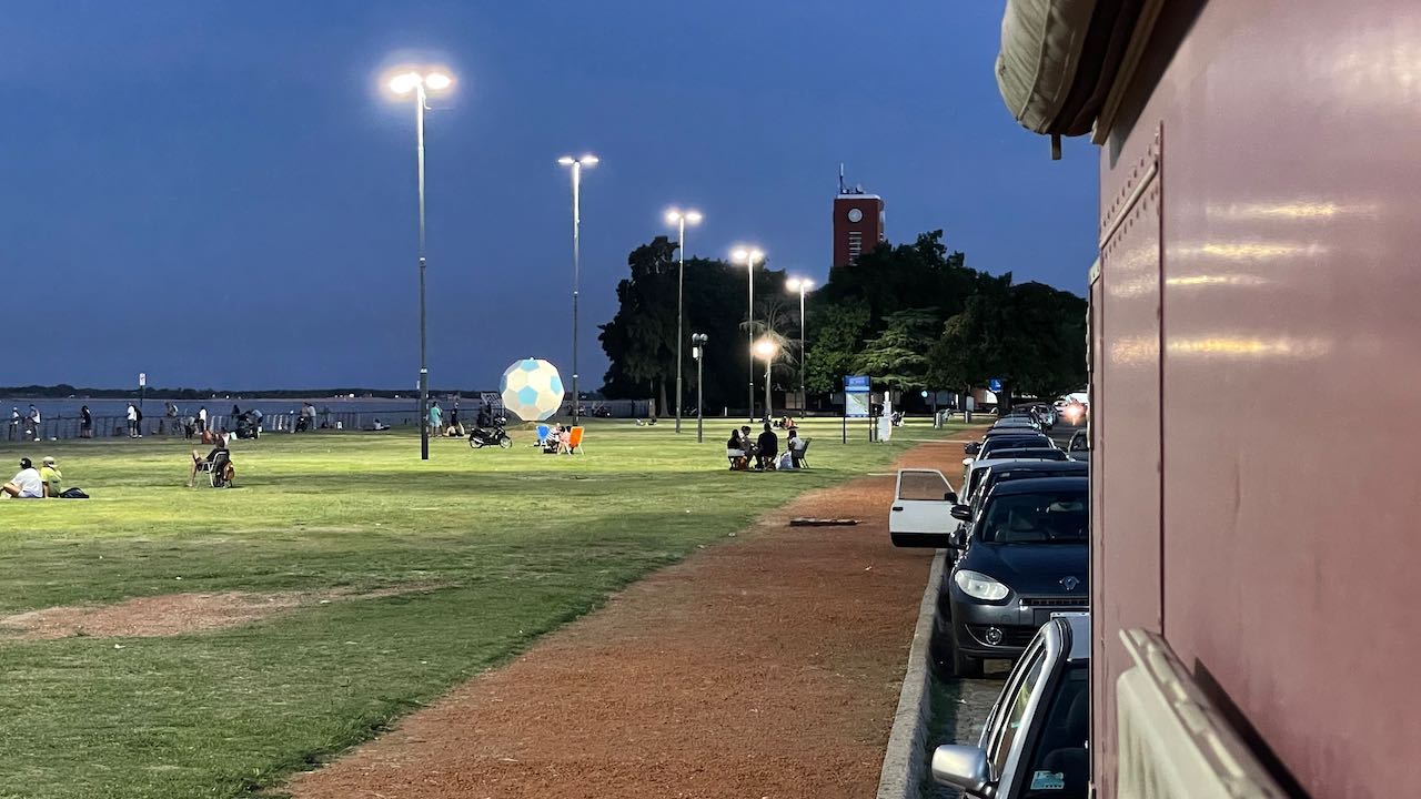 Händler fahren mit Tröte und Fahrrad herum und verkaufen süße Kuchen und warme Brote. Immer mehr Leute kommen mit Picknick und Klappstühlen und sitzen in der Abendsonne. Zwei Jungs im Fußballtrikot fragen schüchtern, woher wir kommen. Um 20 Uhr haben wir immer noch mehr als 20°C.