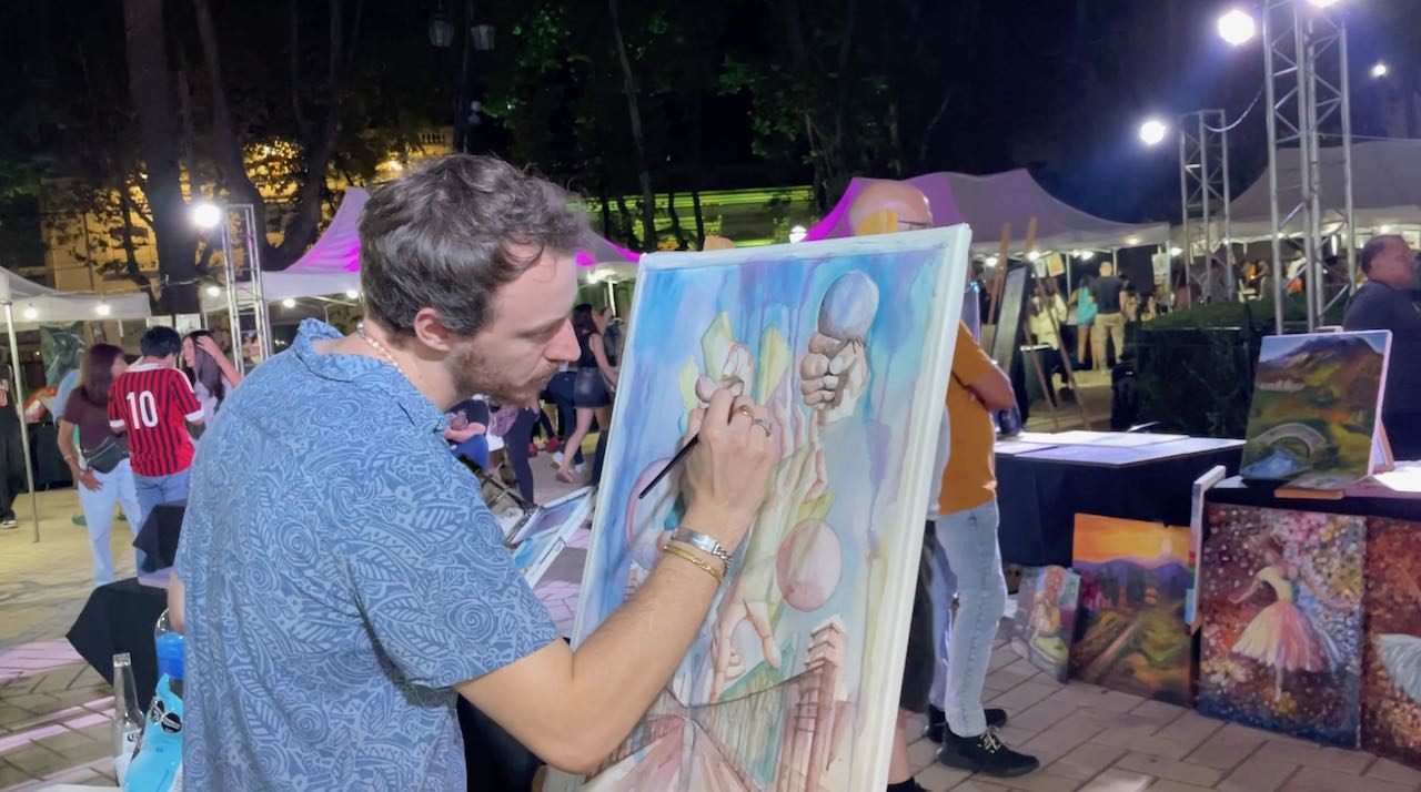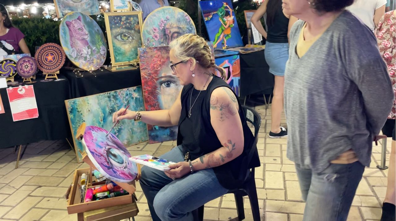 Maler zeigen ihre Werke und ihr Können.