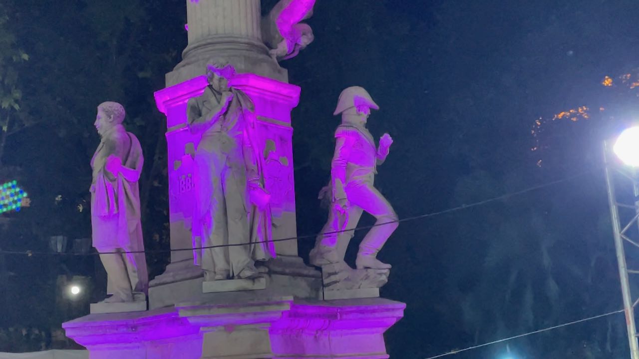 Noche Peatonal: im Dunkeln wirkt das Flaggenmonument nochmal ganz anders.
