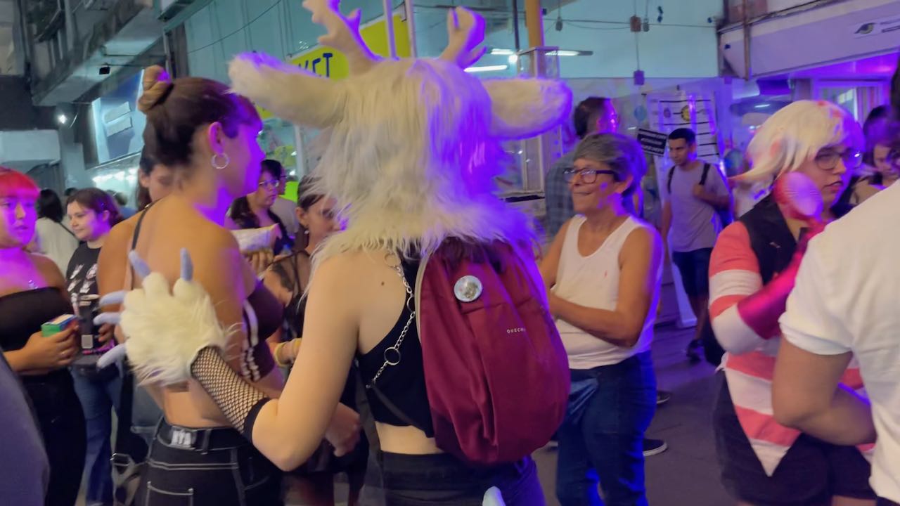 Die Fußgängerzone ist voll. Cosplayer machen Fotos, Strassenkünstler zeigen ihre Darbietungen, vor einem DJ-Pult tanzt ein etwas seltsamer Robot-Dancer im gelben Overall herum.