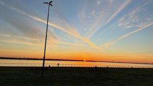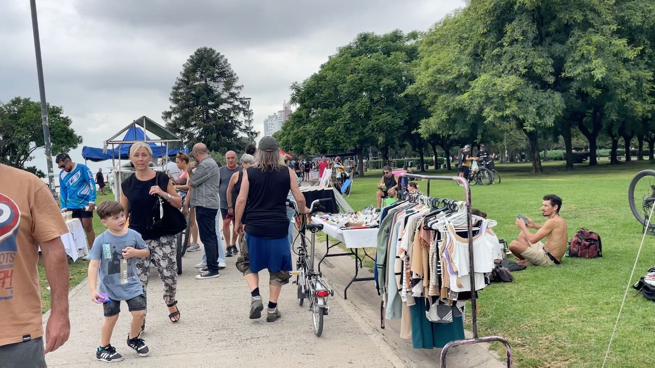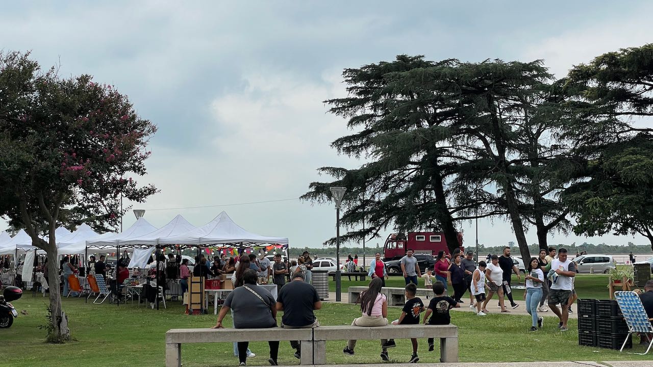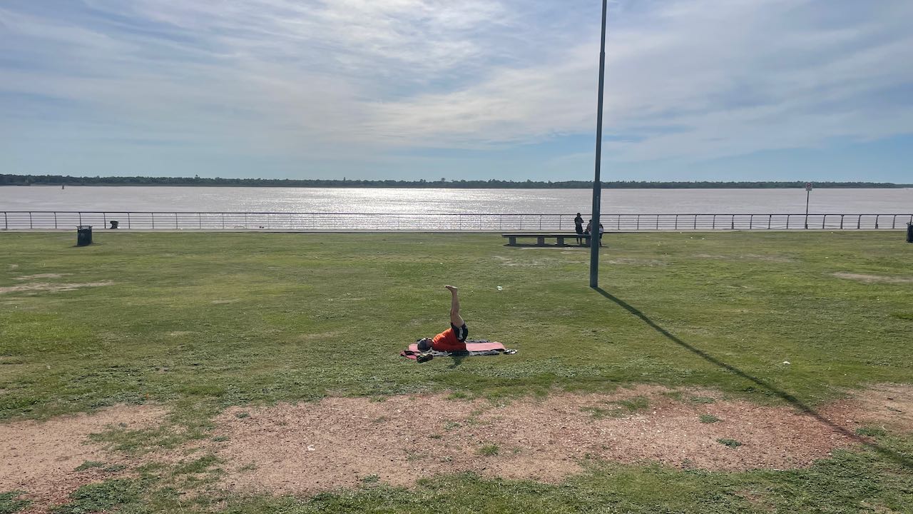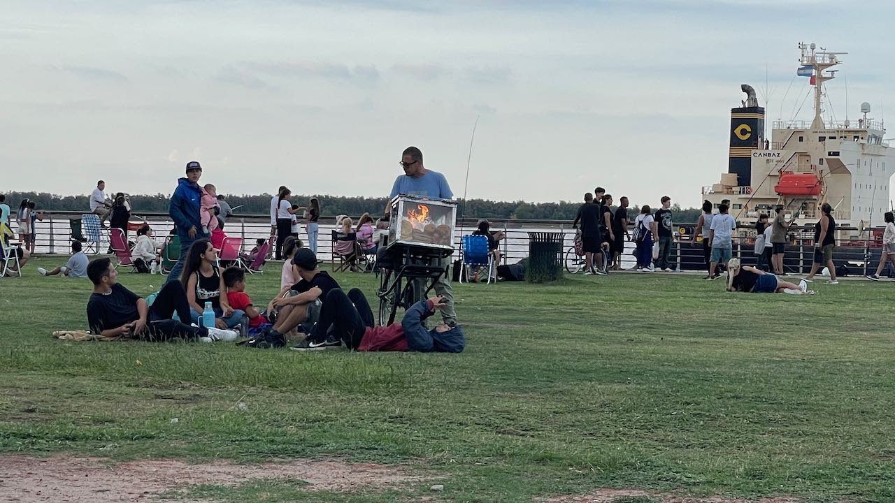 Wir stellen den Tisch raus und essen draußen, so wie viele Rosarier, die zum Picknick an den Rio kommen.