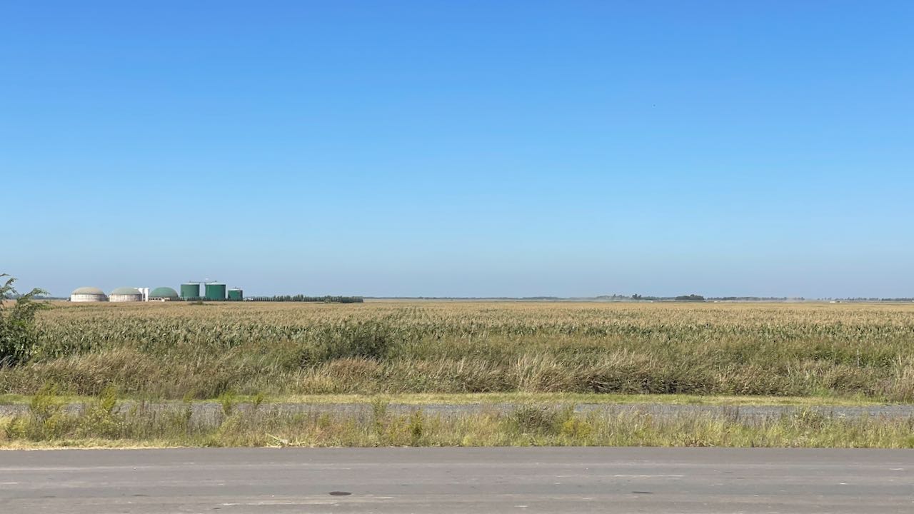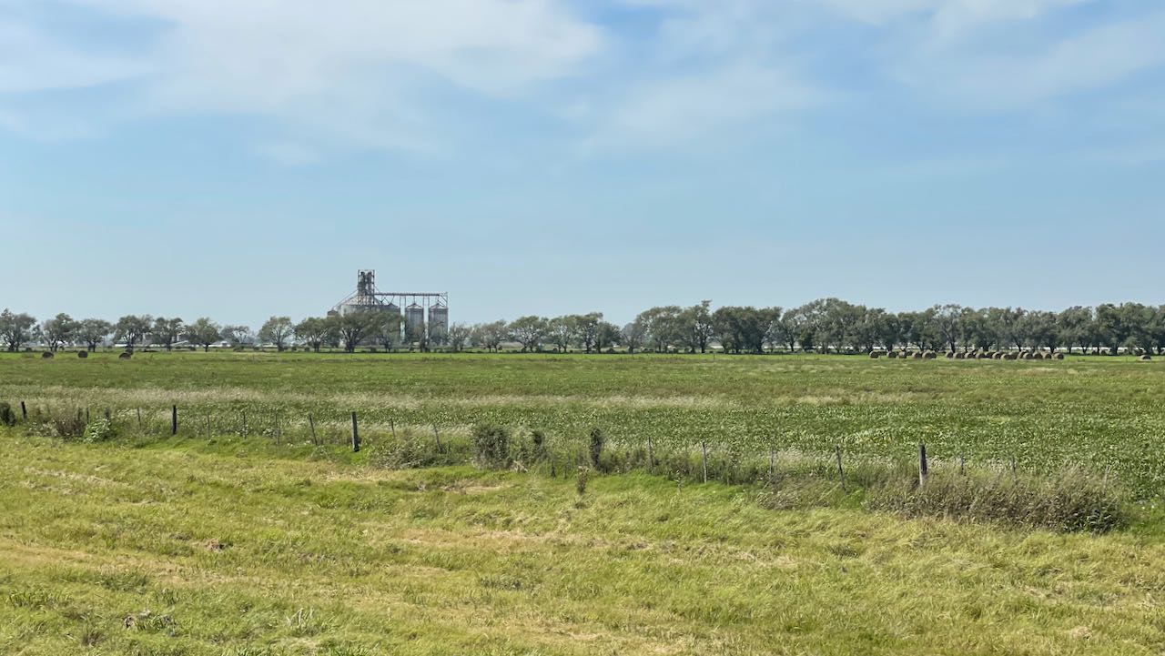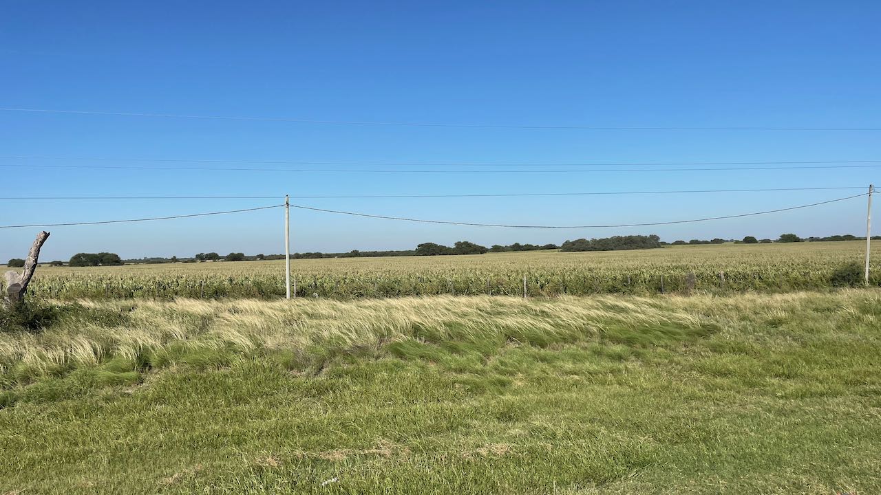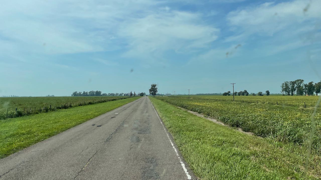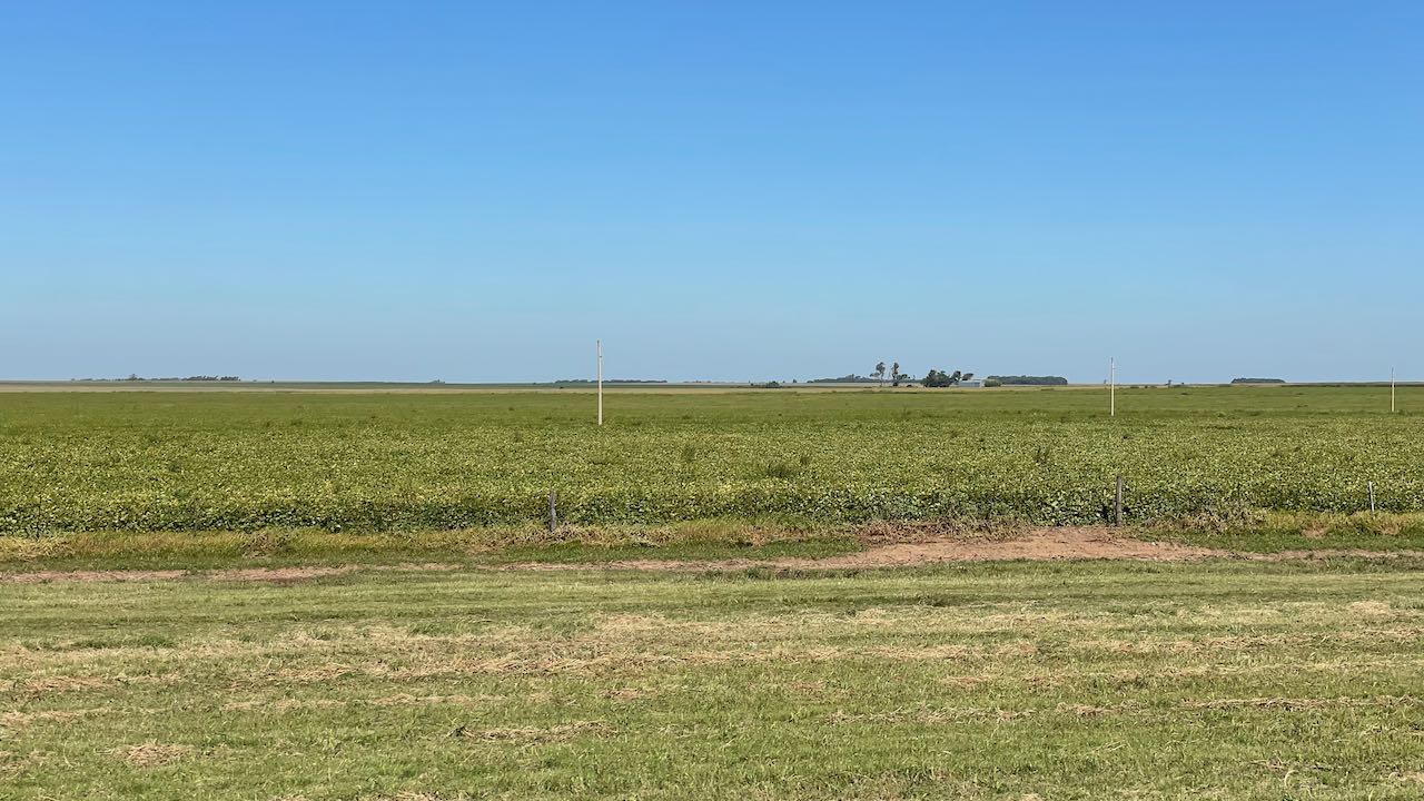 Flaches Agrarland, hunderte Hektar Soja- und Maisfelder, einfache Siedlungen