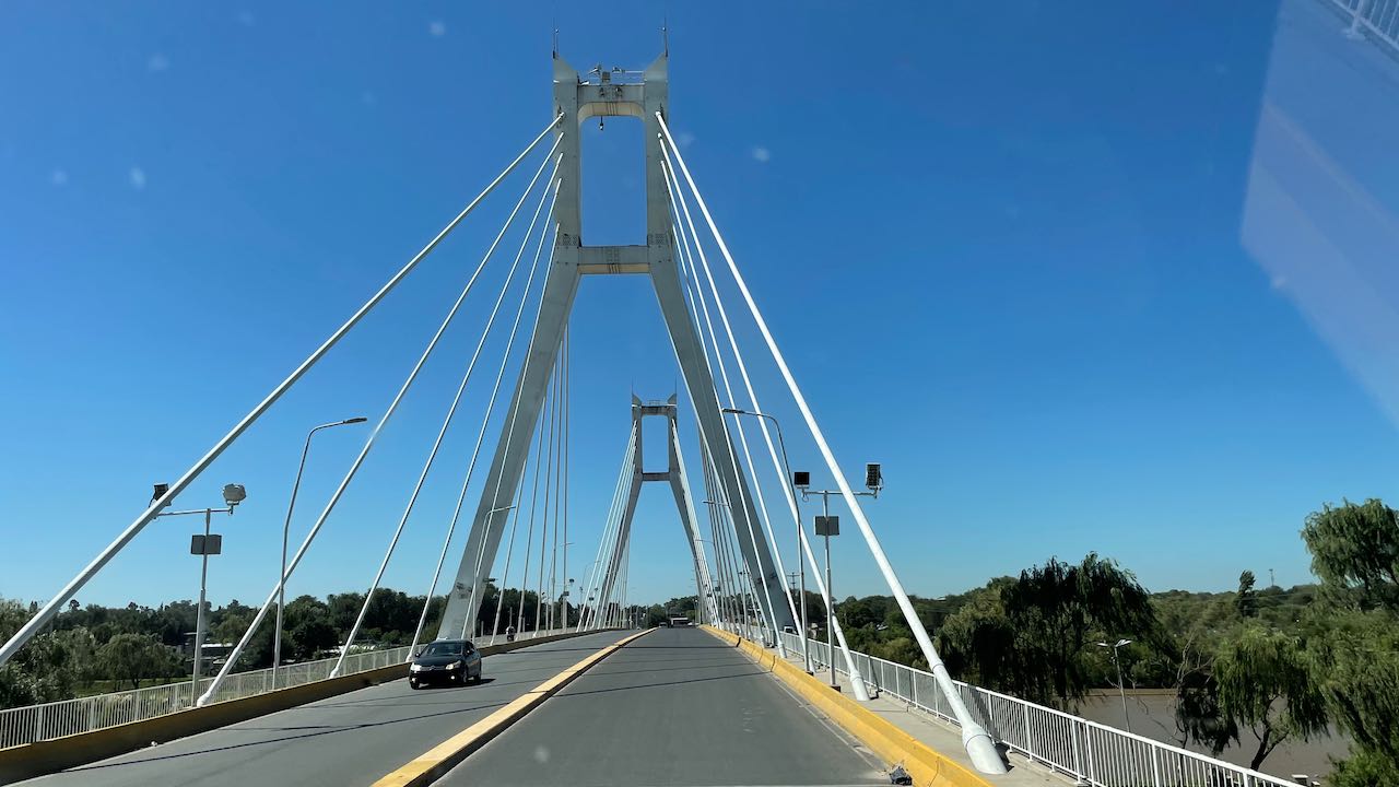 Rio Cuarto, die zweitgrößte Stadt der Provinz Cordoba. 1794 gegründet, doch von Altstadt ist nichts zu sehen, nur moderne, häßliche Bauten. Wir überqueren den gleichnamigen Fluss.
