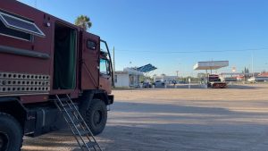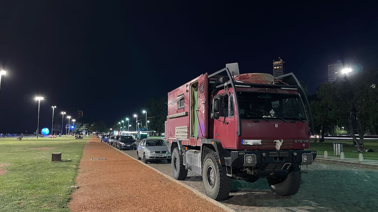 Wir sind müde vom Fahren und der Hitze und fackeln nicht lange. Gleich bei der YPF Tankstelle in Villa Maria parken wir für die Nacht.