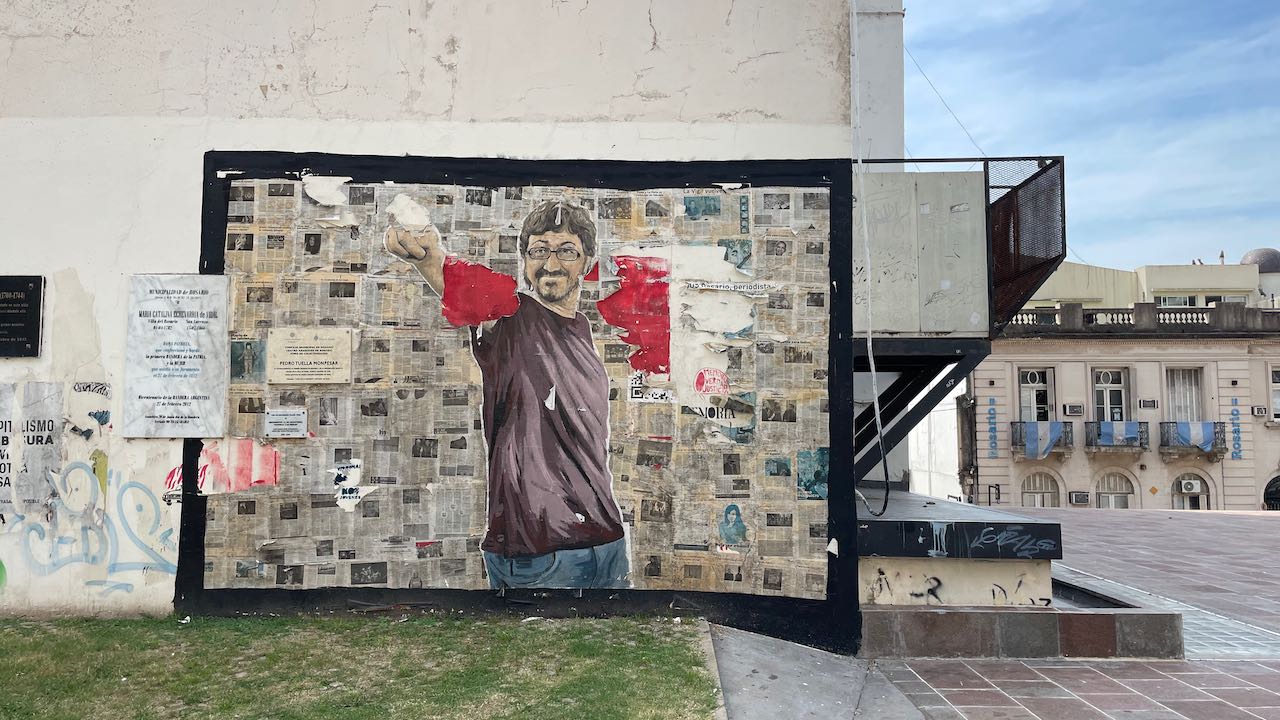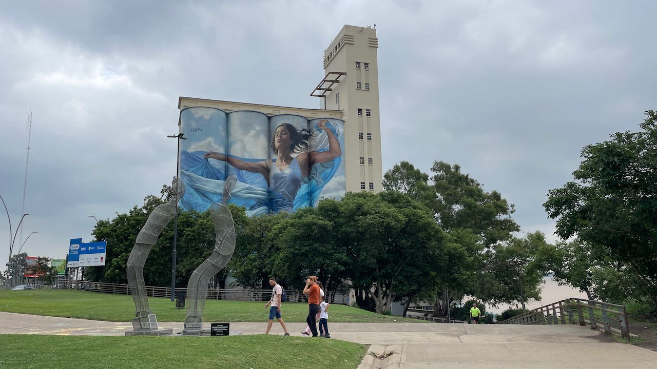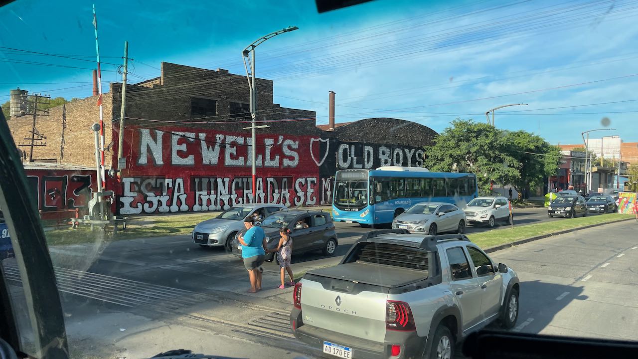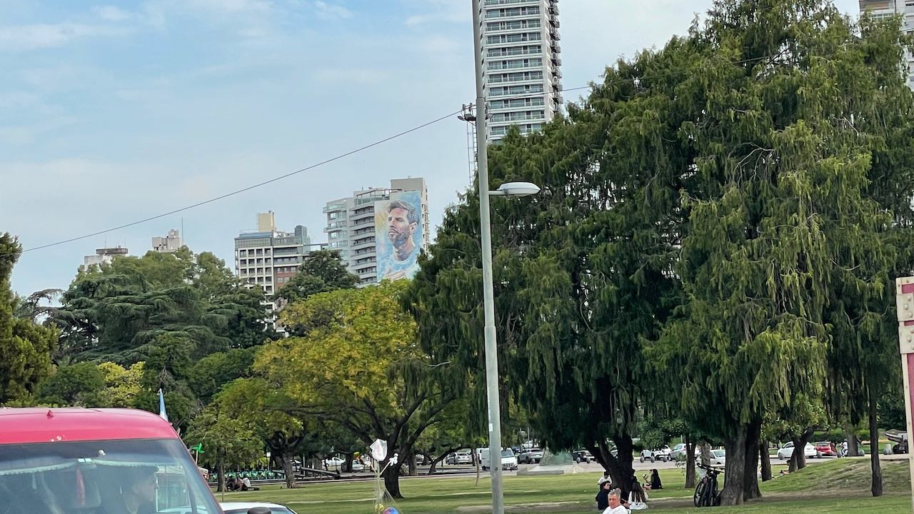 Gleich an der Hauptstrasse die erste gepriesene Sehenswürdigkeit: ein großflächiges Mural von Lionel Messi, dem Fußballhelden. Er ist in Rosario geboren.