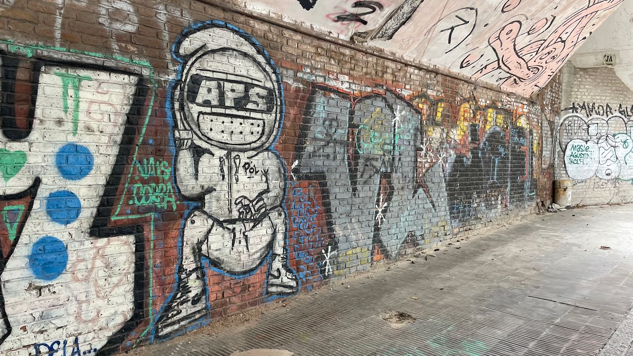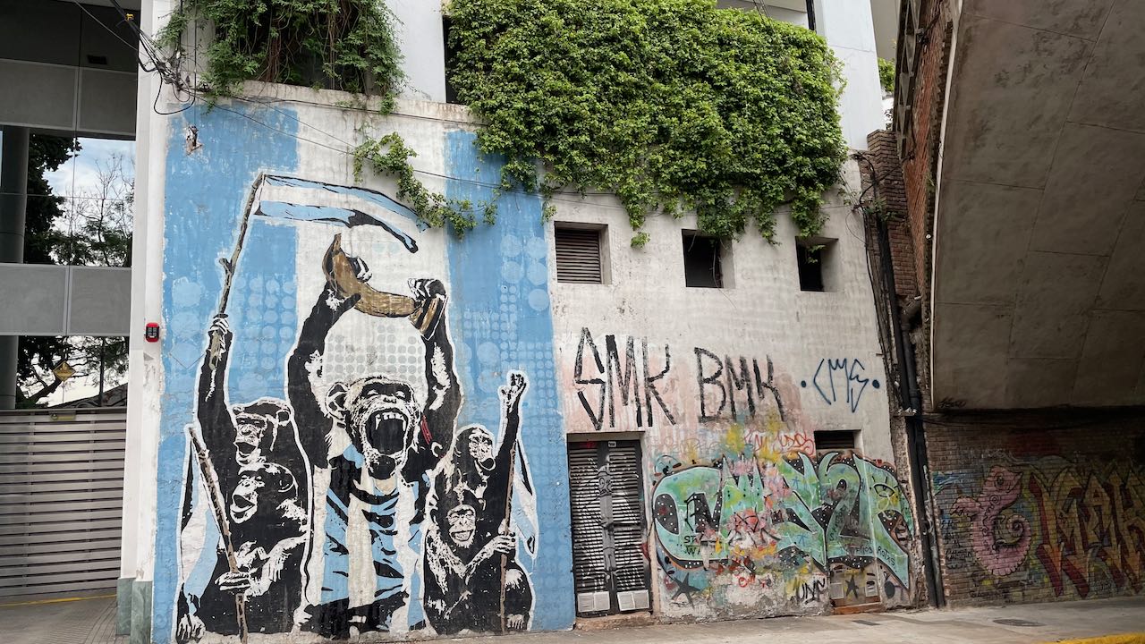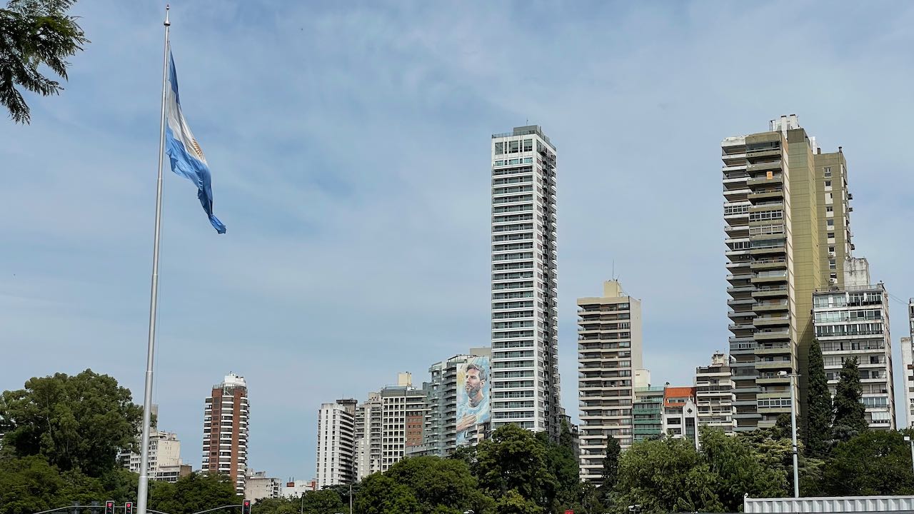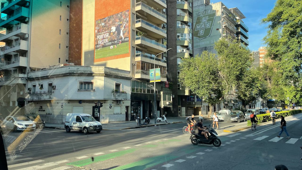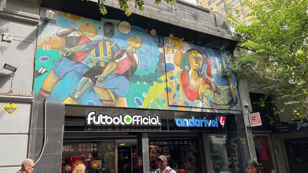 Gleich an der Hauptstrasse die erste gepriesene Sehenswürdigkeit: ein großflächiges Mural von Lionel Messi, dem Fußballhelden. Er ist in Rosario geboren.