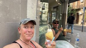 33°C und hohe Luftfeuchtigkeit, Rosario ist die nationale Hauptstadt des Helado. Wir gönnen uns ein Eis.
