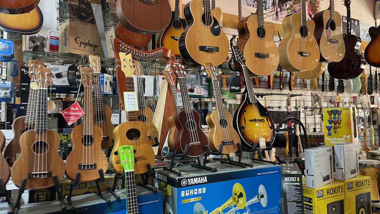 Der Mercado ist langweilig. Matetassen und anderes uninteressantes Zeug. Viel interessanter finden wir das Musikgeschäft
