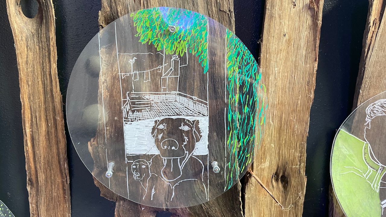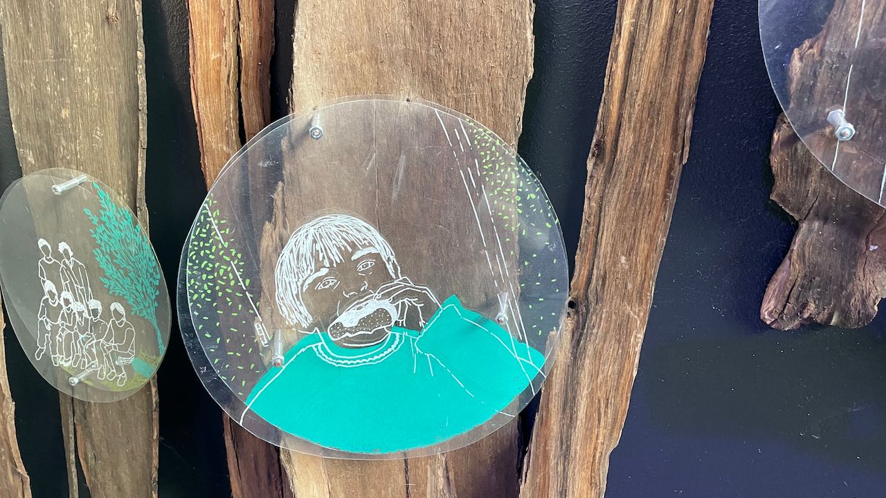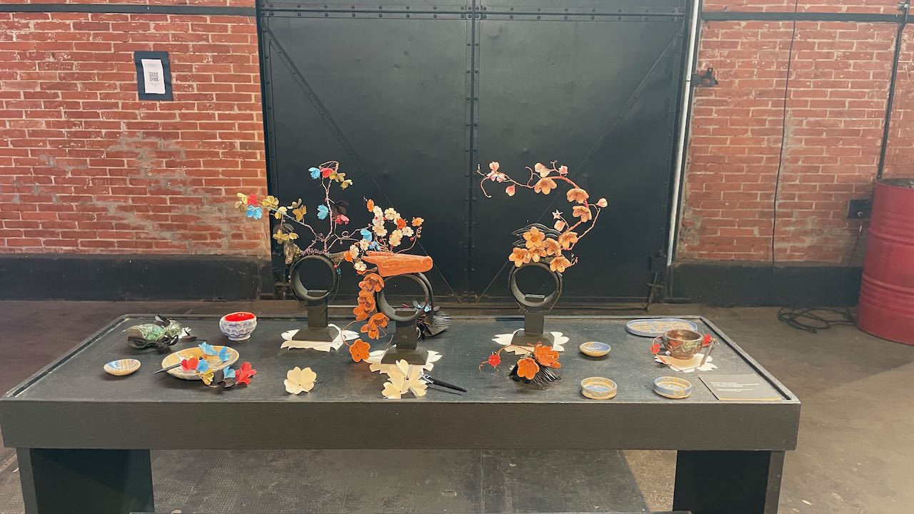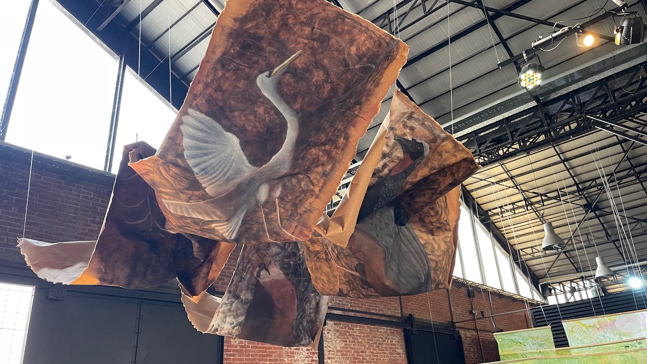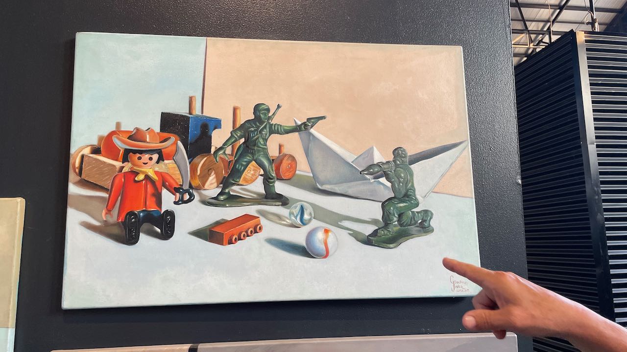 Im Lagerhaus nebenan findet eine Ausstellung der Kunstschule statt.