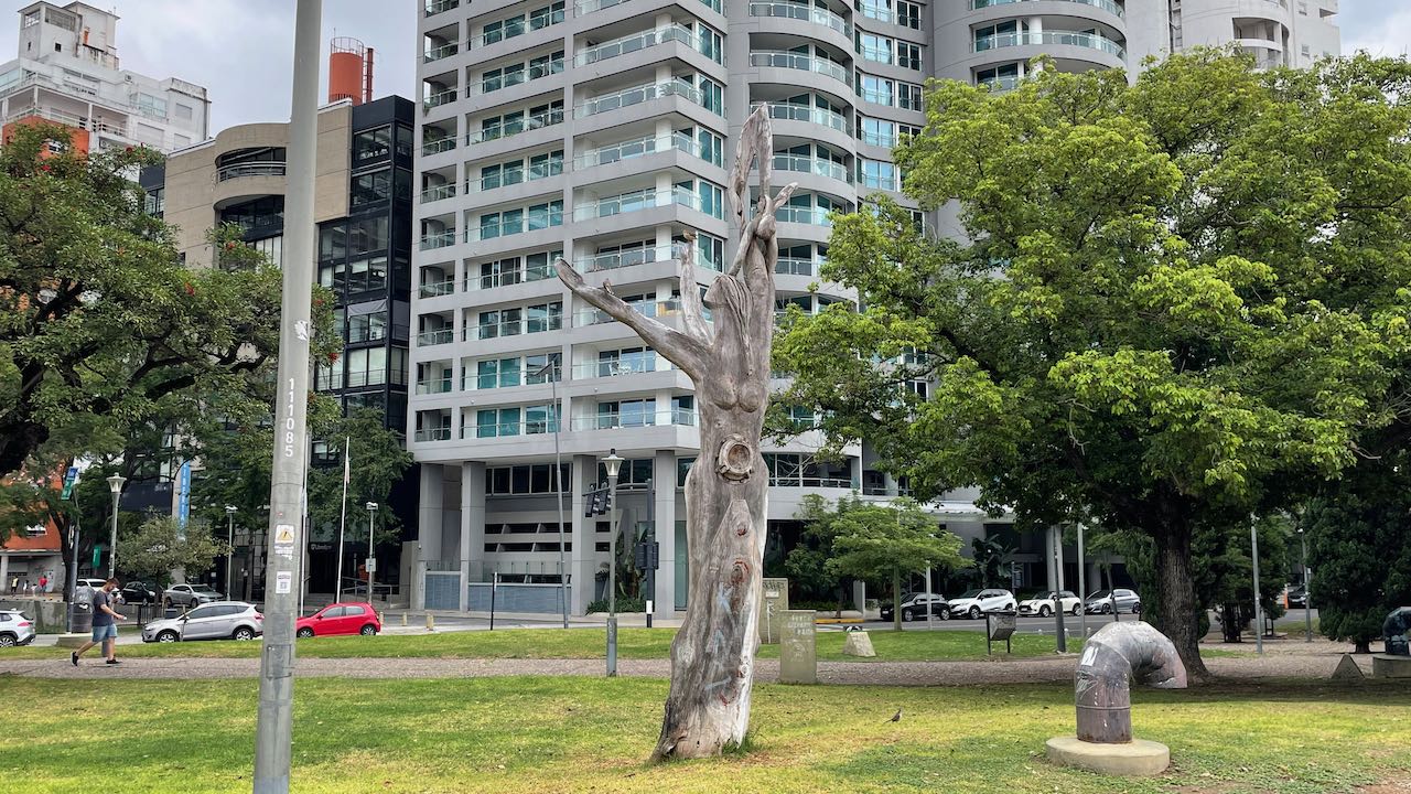 7½ Kilometer Stadtwanderung, reicht uns erstmal. Messi grüßt über die Bäume