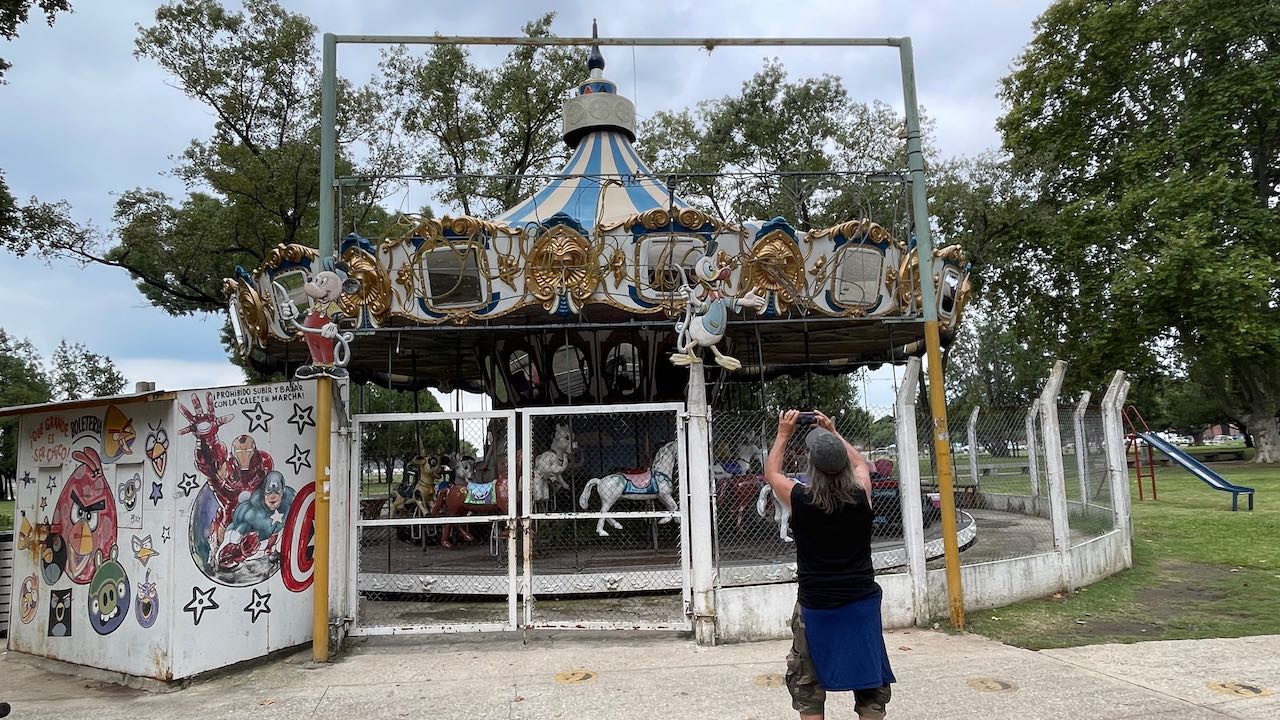 Martin zeigt mir dieses entzückende Karussel, das er morgens beim Joggen entdeckt hat.